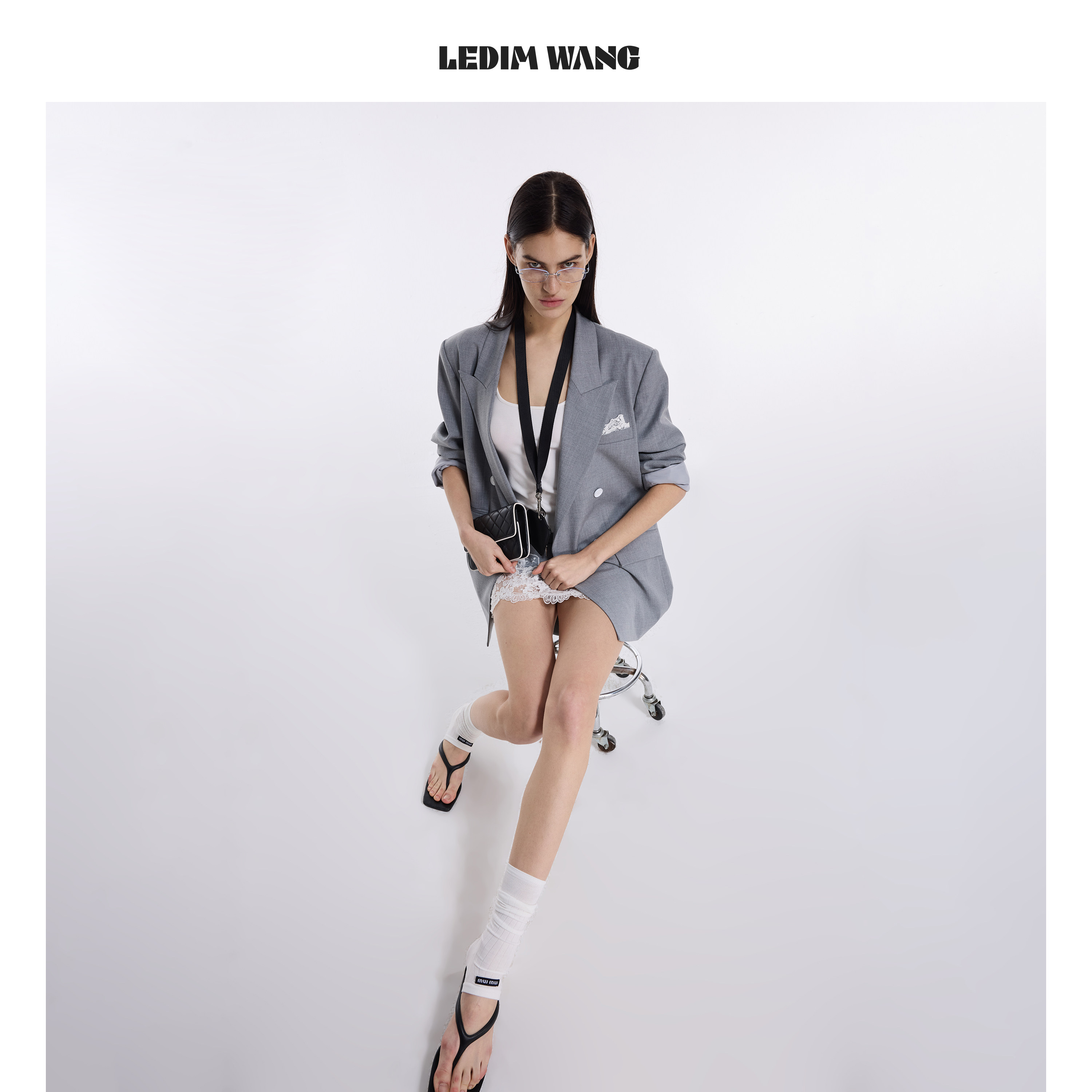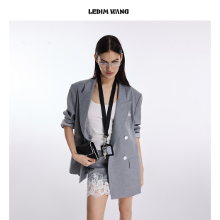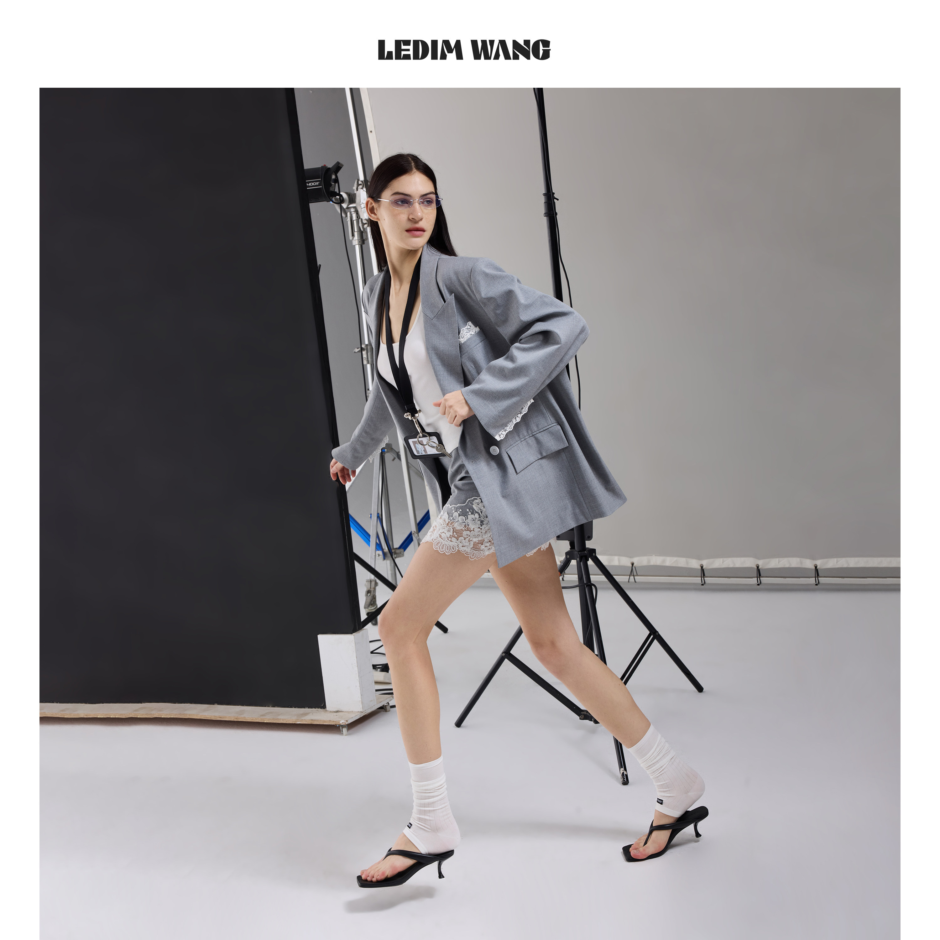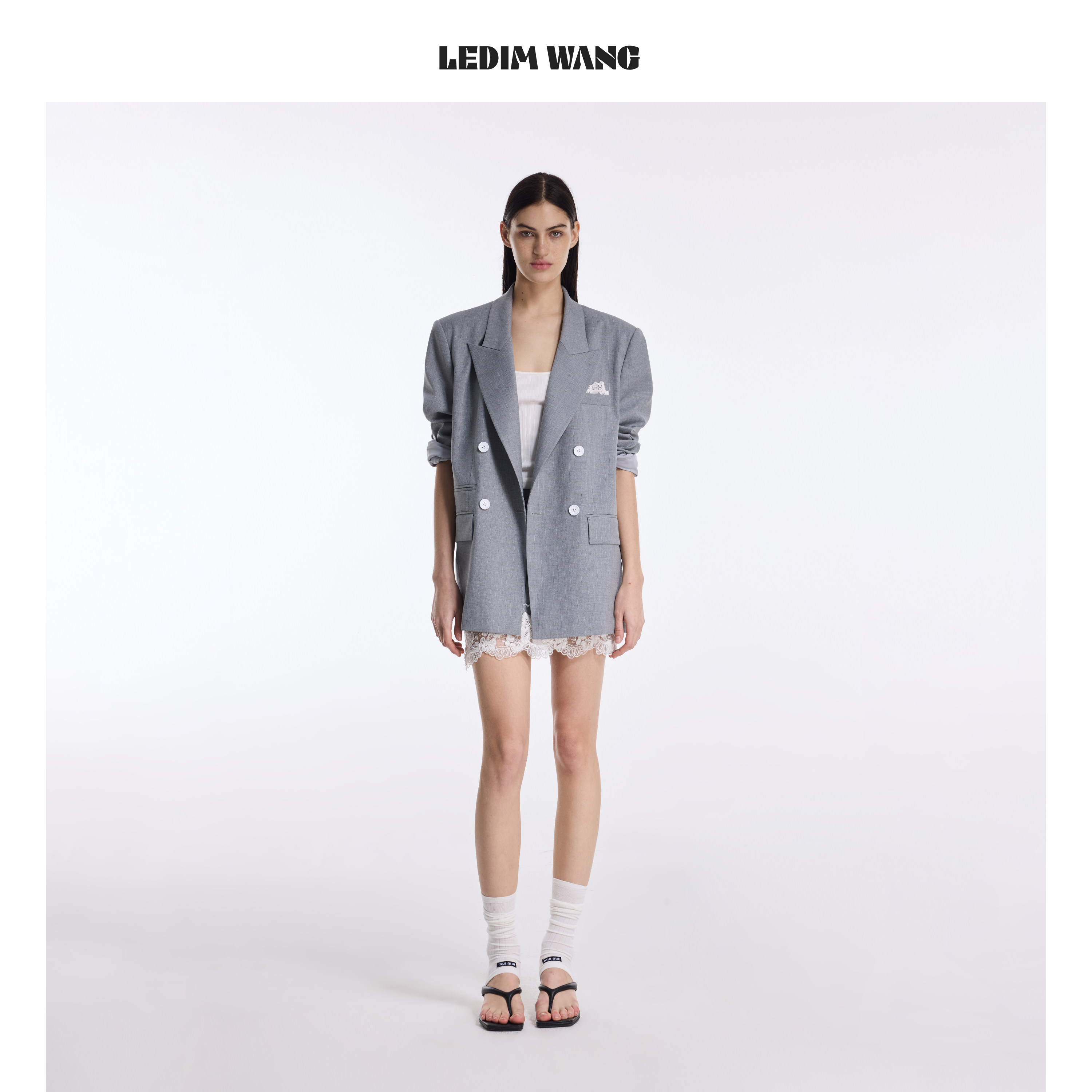 外套女灰色高智休闲通勤2026春夏新款 LEDIM WANG柔性职场蕾丝西装