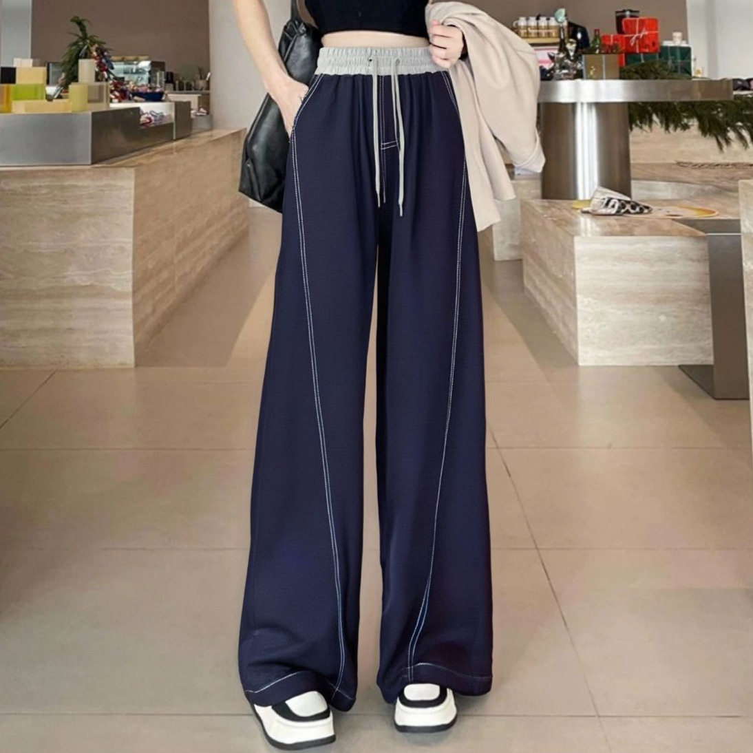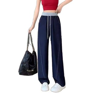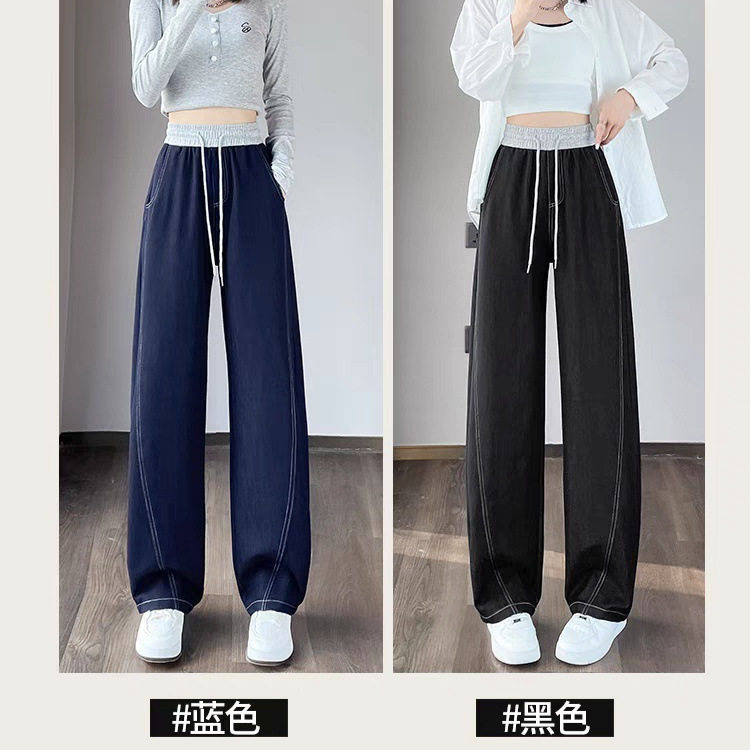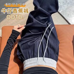 宽松垂感云感海洋裤 香蕉牛仔弯刀裤 高腰显瘦撞色阔腿裤 新款 女春季