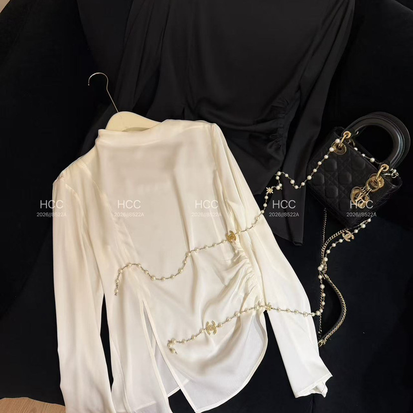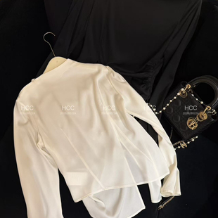 云朵26年春款 无包包链条 T恤 603 前开叉斜摆宽松长袖