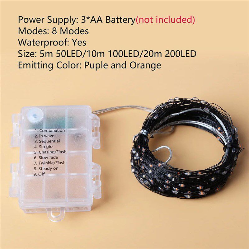 Orange String Light 12m100 Battery Purple Outdoor Powere LED