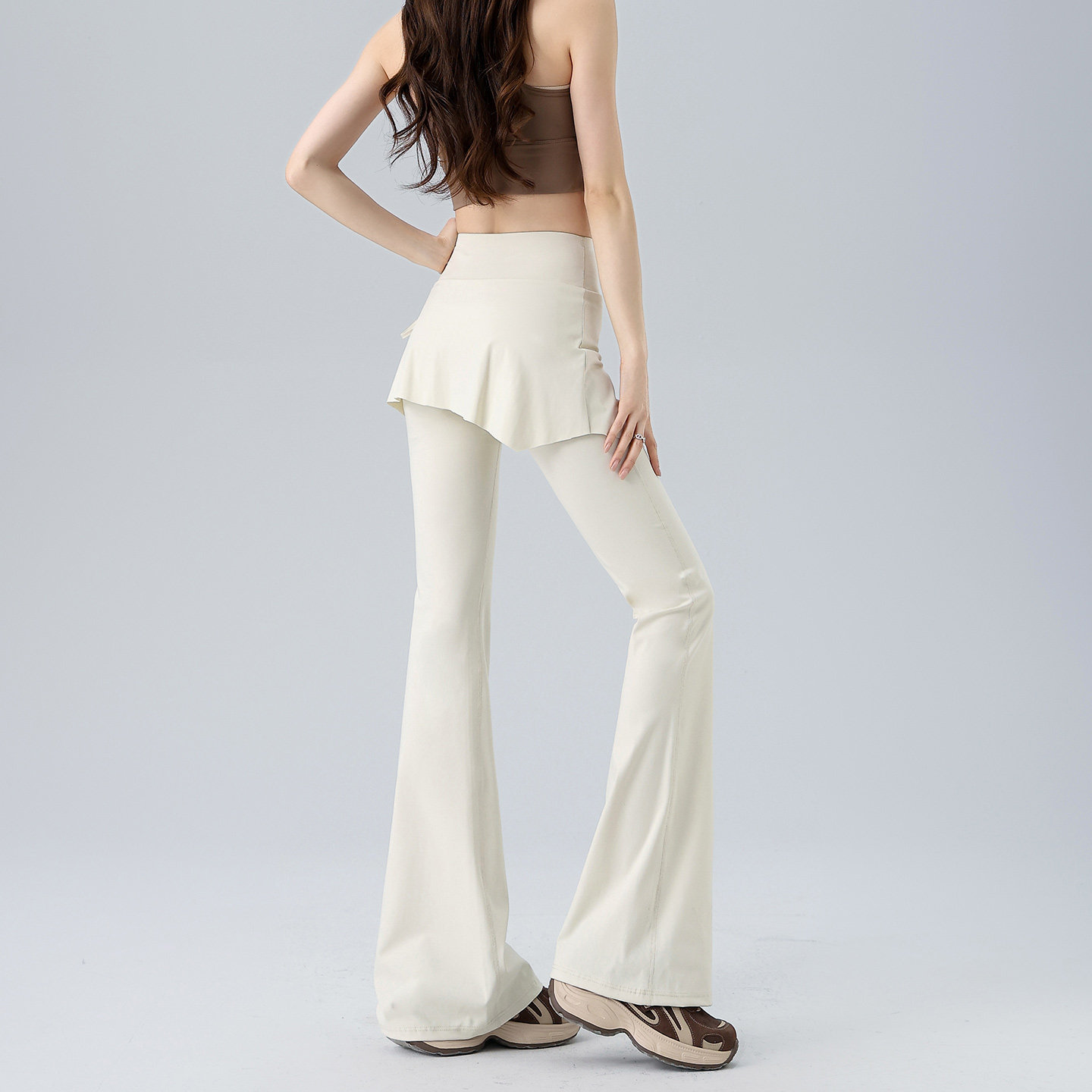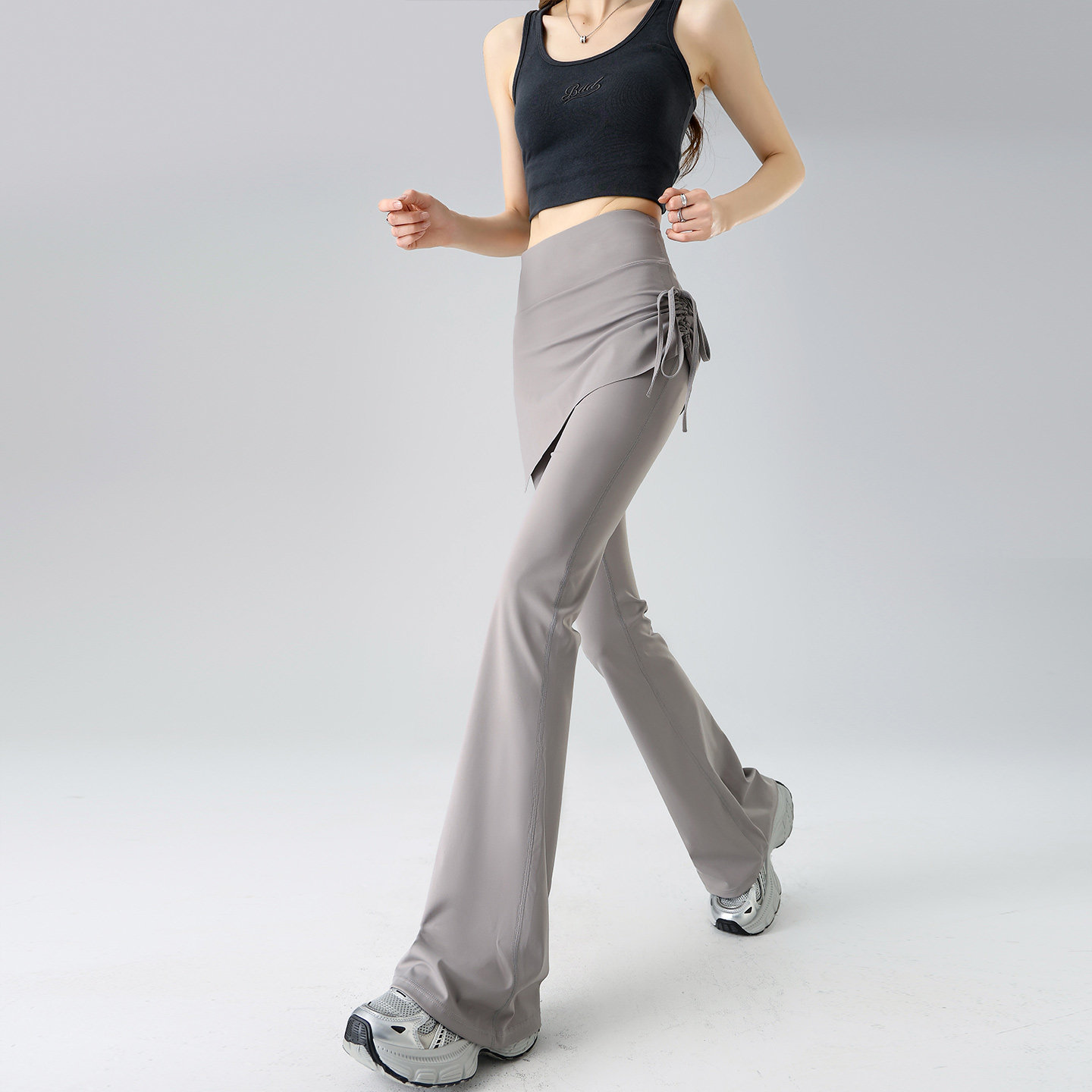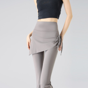 健身长裤 女高腰收腹提臀鲨鱼裤 外穿 显瘦假两件微喇瑜伽裤 微喇裤