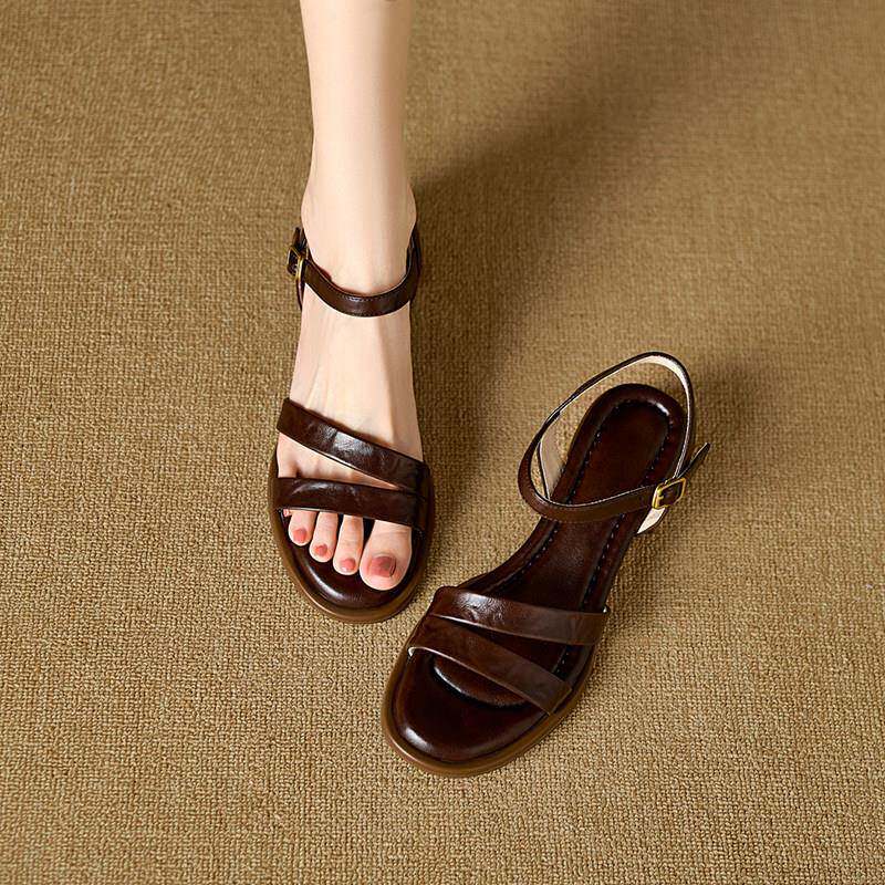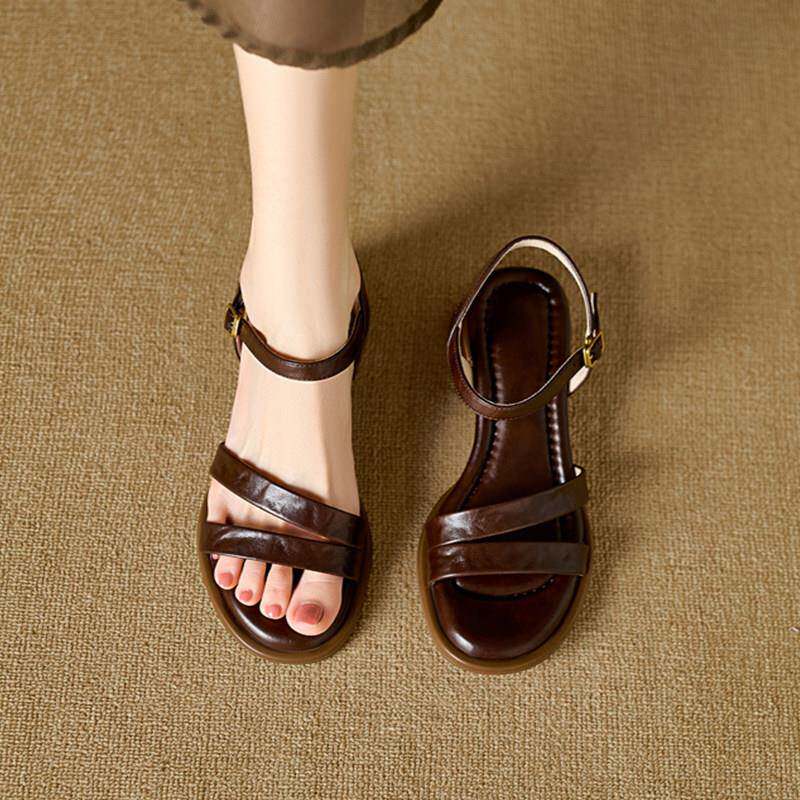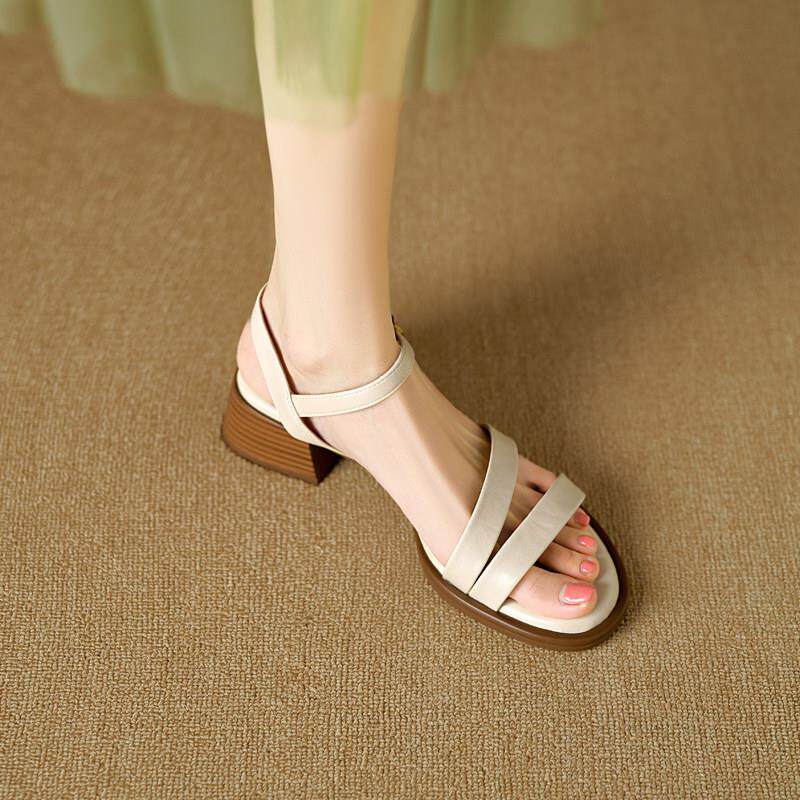 外穿粗跟软底高跟鞋 夏款 女季 一字带凉鞋 配裙子0325d 法式