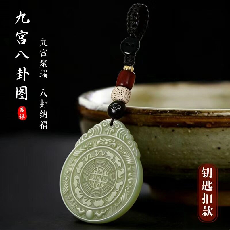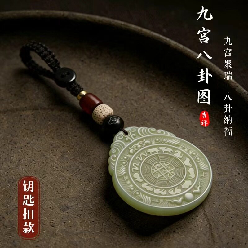 九宫八卦图仿和田玉吊坠钥匙扣男女款 招财纳福挂件吉祥饰品