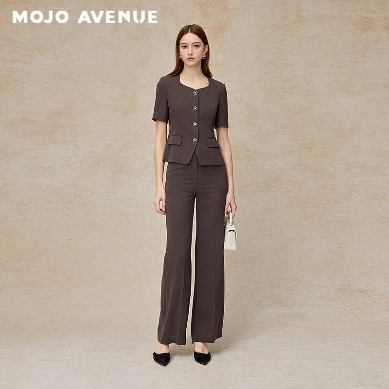深咖色高腰职场微喇休闲裤 2026智感通勤利落西裤 MOJO夏新品 朗姿