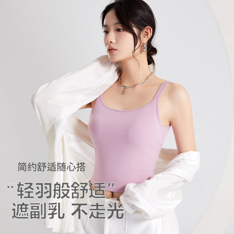 自然优化身形紧而不勒打底衫 专柜浅紫色细肩带吊带女2026夏季 新款