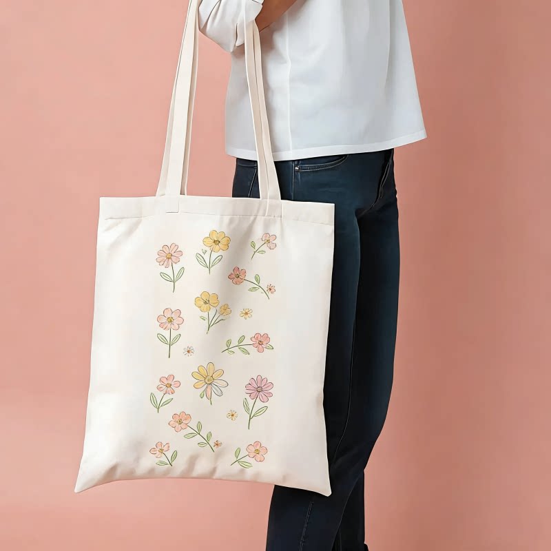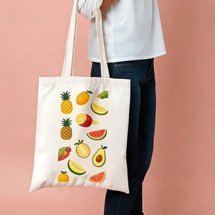 学生通勤单肩包 森系文艺托特包 小众不撞款 小熊猫兔印花帆布包