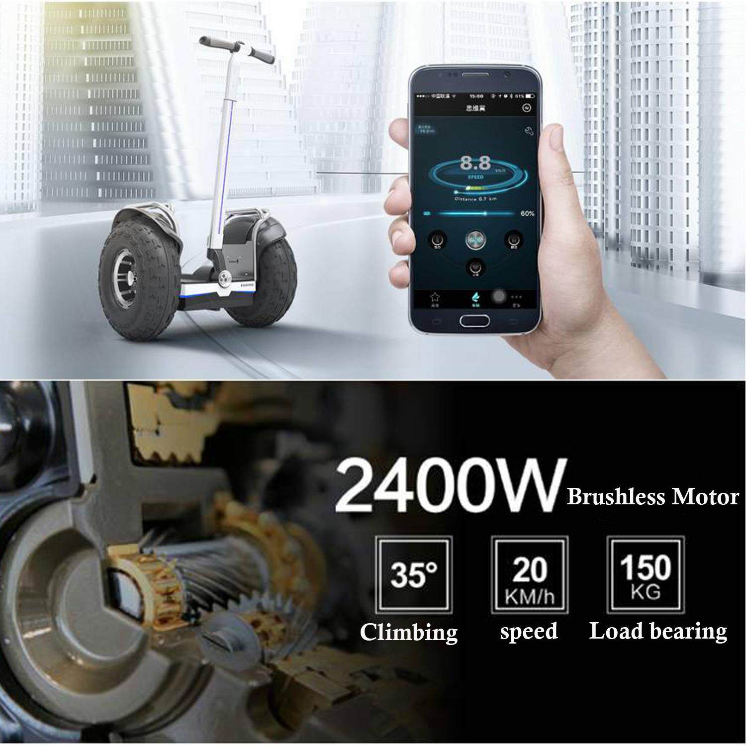 eswing思维翼沙滩越野手扶两轮平衡车智能体感2400W55.5V双轮代步