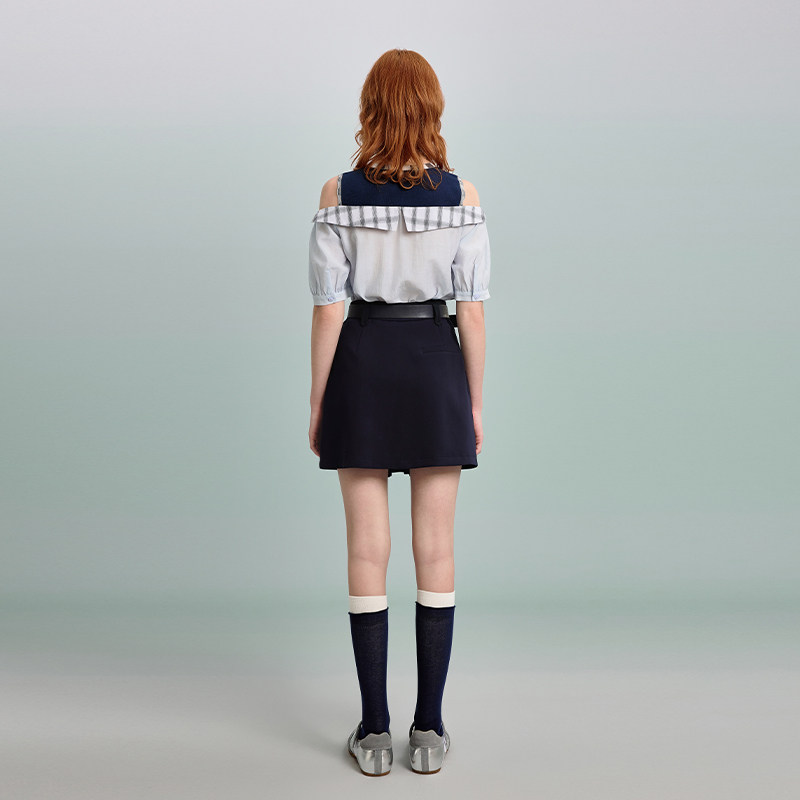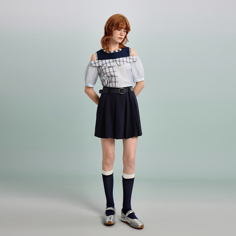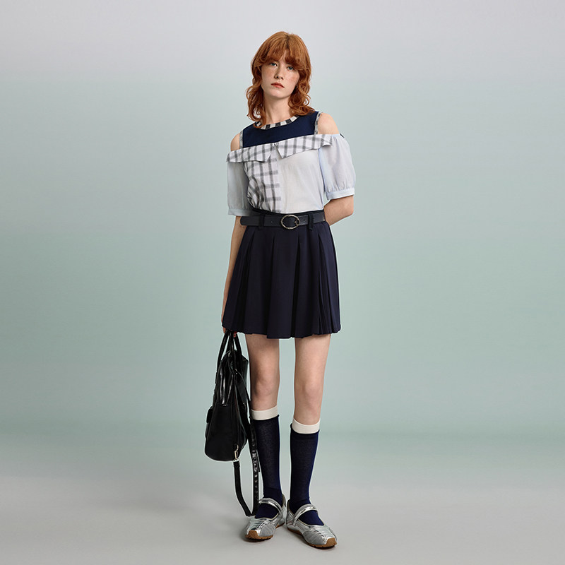 百搭显瘦上衣 新款 PIT露肩短袖 套头拼接T恤女2026春季