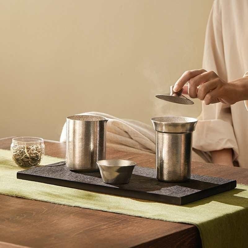 鸣盏纯钛快客杯便携旅行茶具一壶一杯套装 茶杯双层钛杯户外露营