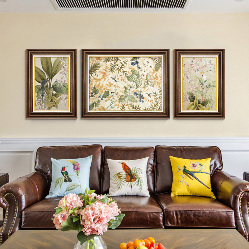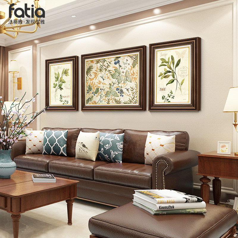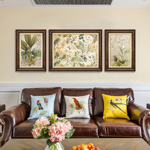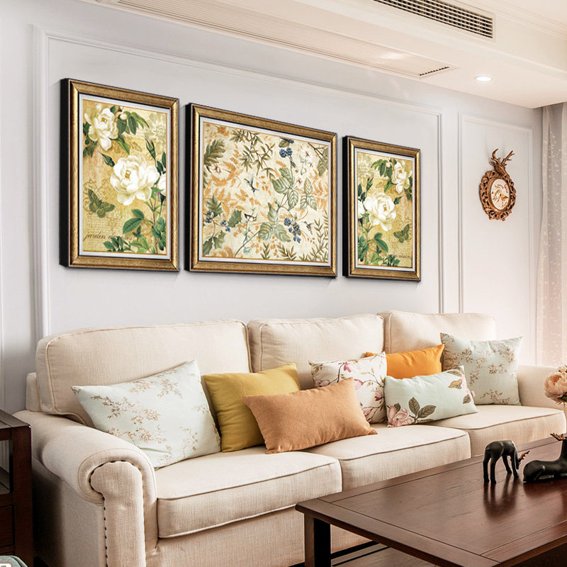 壁画欧 饰画客厅沙发背景墙挂画三联F画复古油画田园风法式 美式 装
