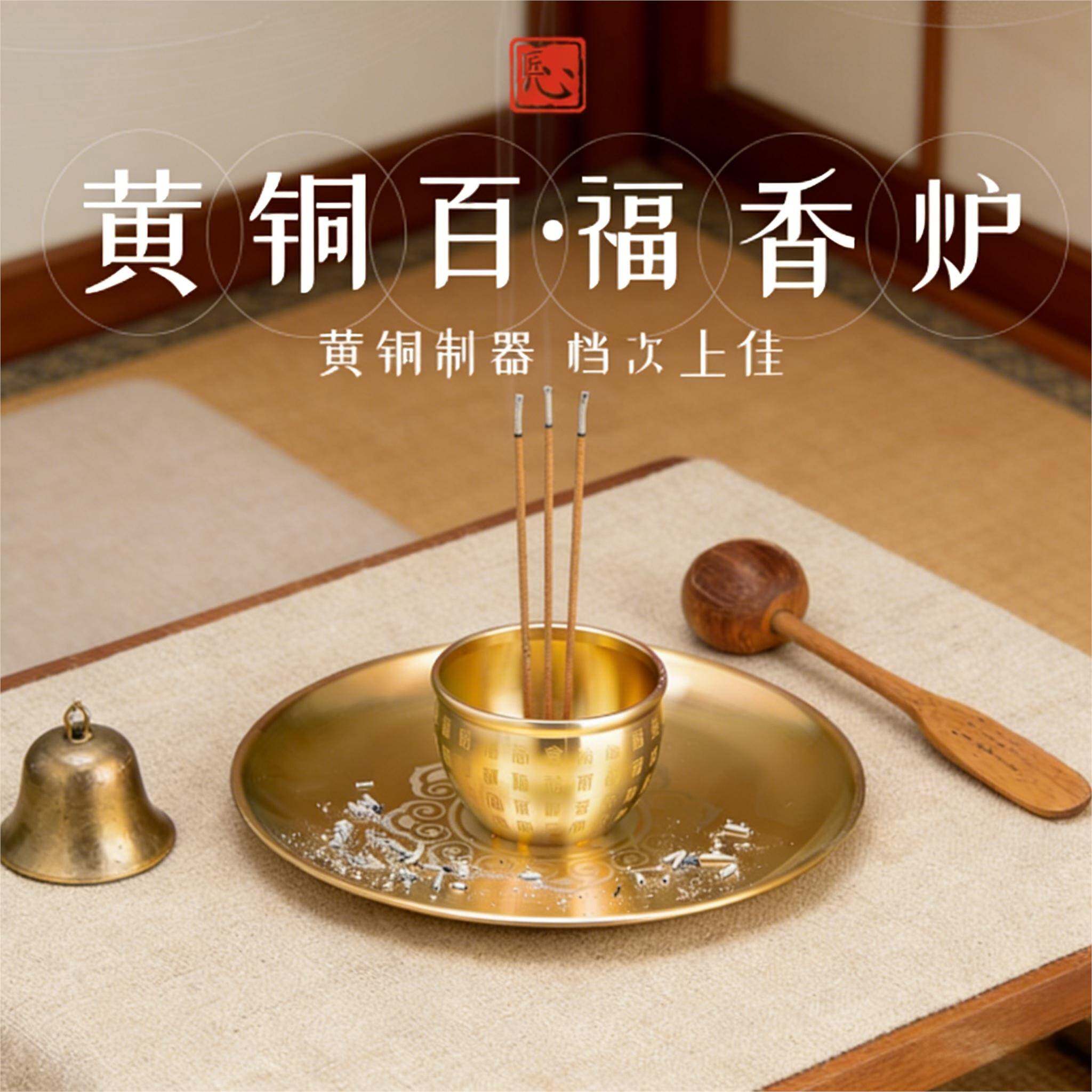 纯黄铜迷供水财神缸福你小香家用室内供奉炉佛堂香插炉香OGT百薰