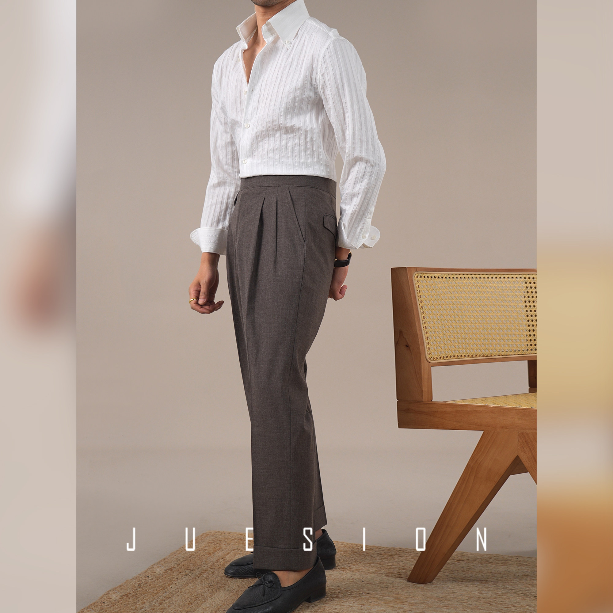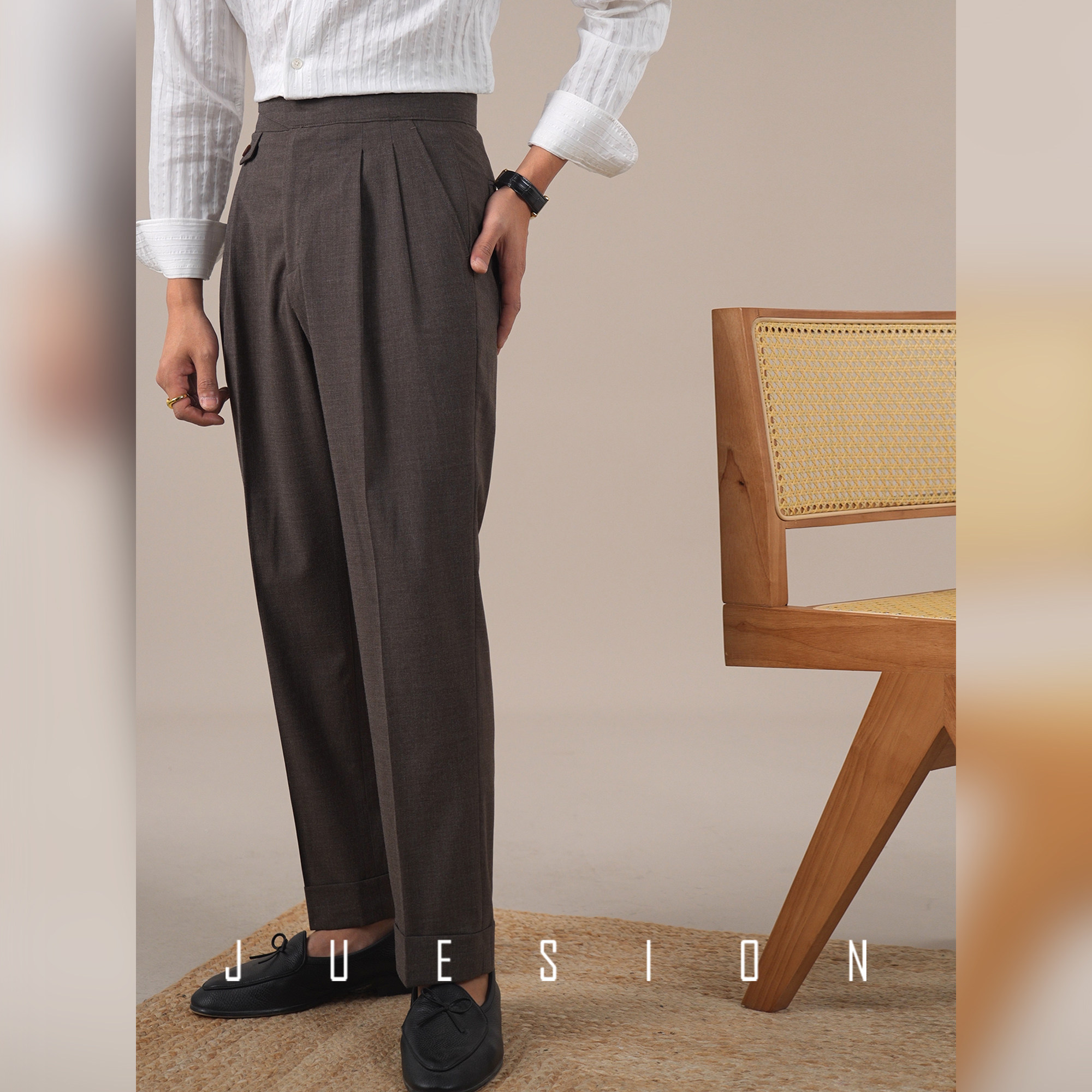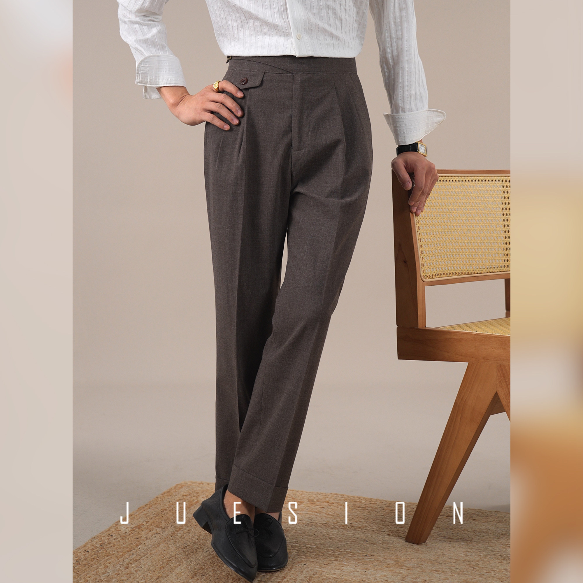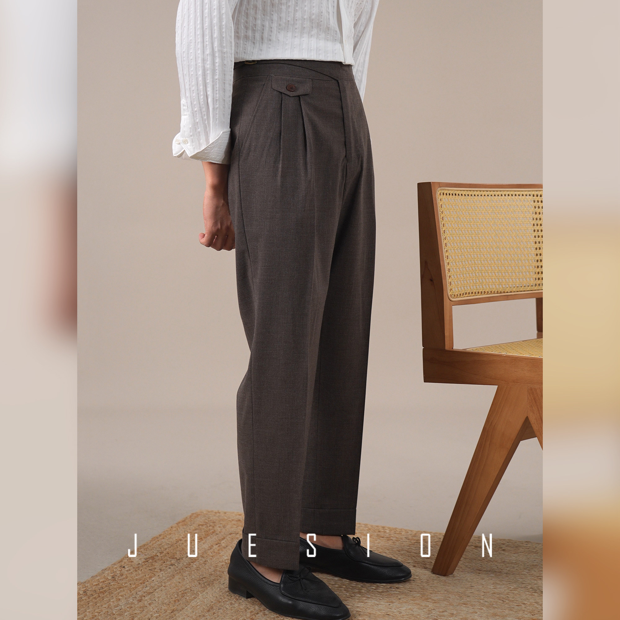 长裤 男双褶直筒高腰系扣高级垂感商务西装 复古廓尔喀西裤 JUESION