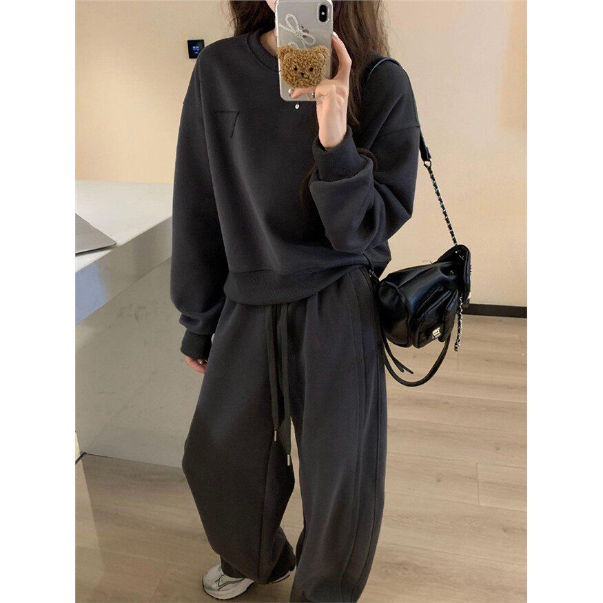 秋冬女性减龄休闲运动套装 香蕉裤 朝鲜式 圆领运动衫 两 宽松修身 西式