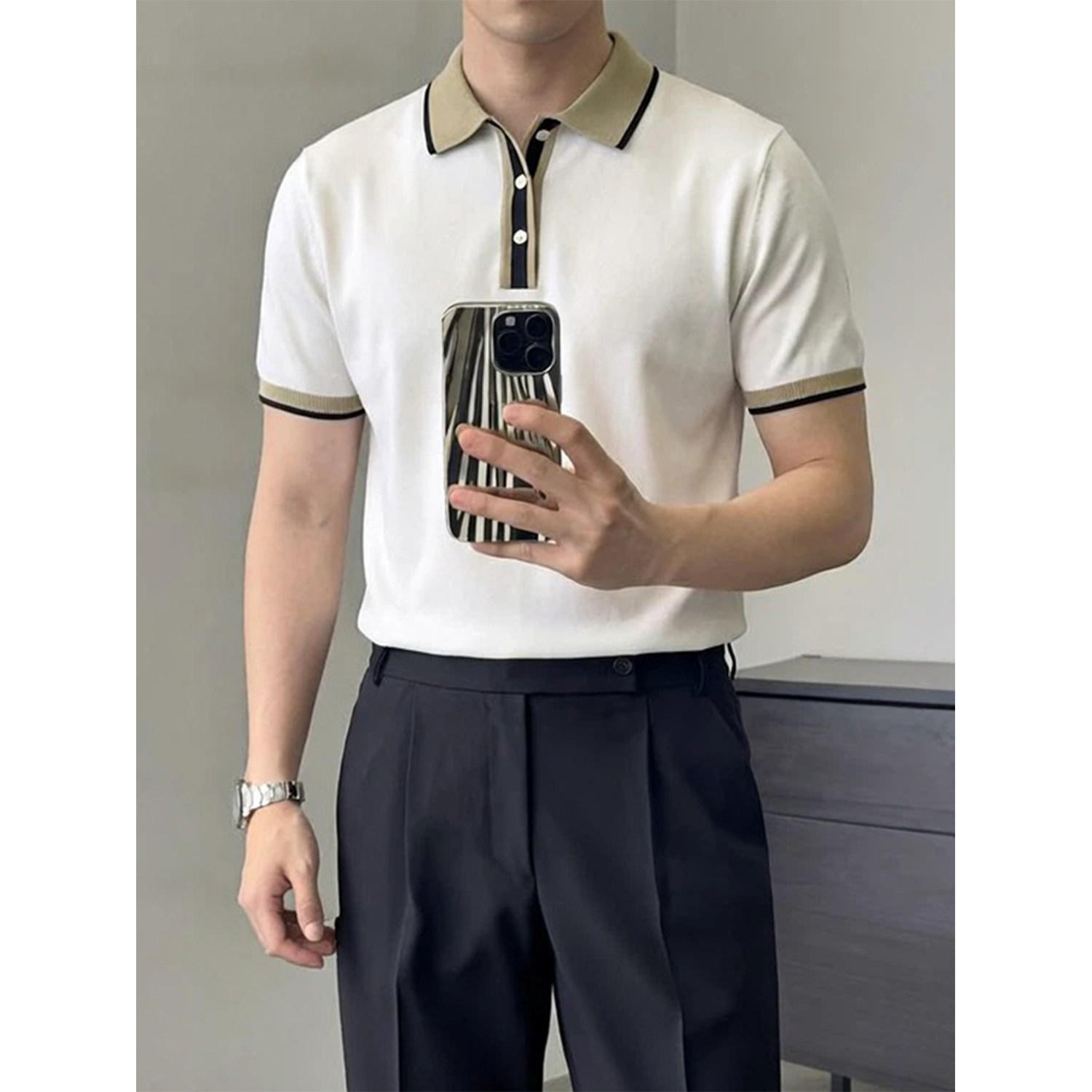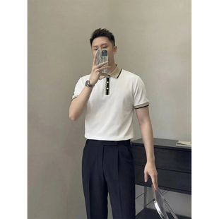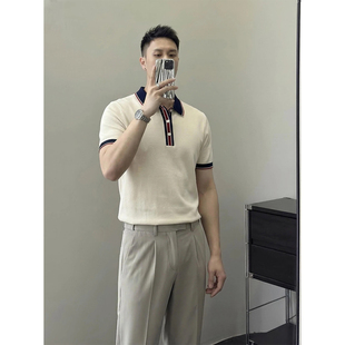 夏季 男短袖 轻奢商务百搭显气质翻领上衣 撞色领针织polo衫 里奈男装