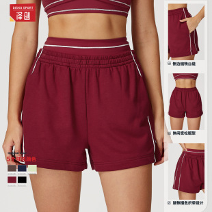 7028 户外休闲舒适百搭短裤 跨境撞色运动短裤 高腰宽松直筒口袋卫裤