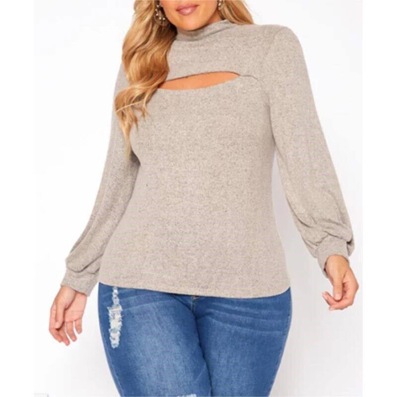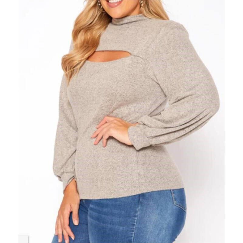 Roll Neck Sweater Plus Long Out Size Hollow Womens Elegant