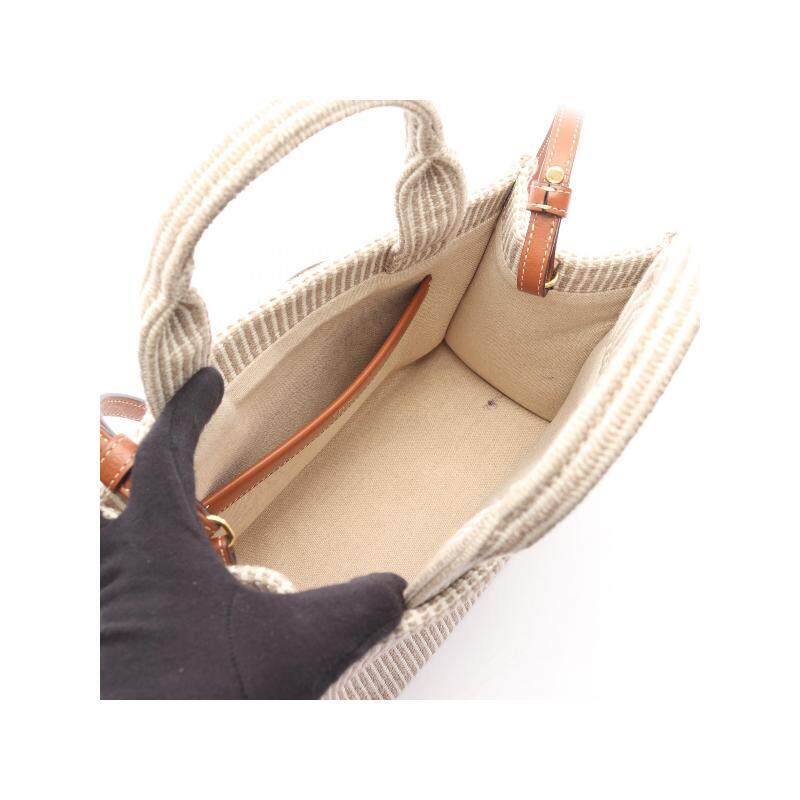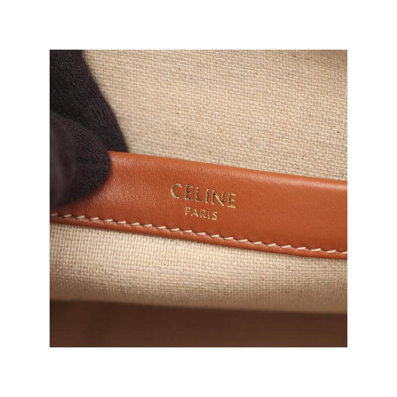 中古Celine赛琳女包A级95新Triomphe凯旋门老花帆布托特包浅褐色