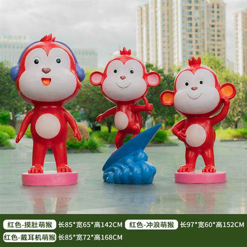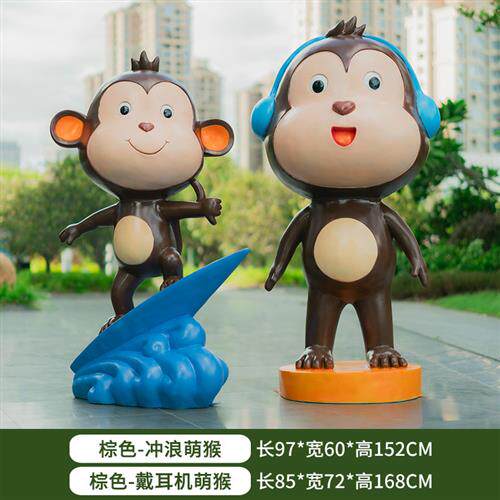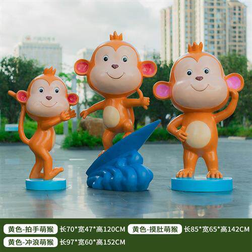 卡通猴子雕塑户外动物园林景观网红拍照打卡装 饰品玻璃钢大摆件