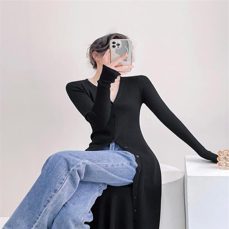 长修身 外套女2025春夏罩衫 显瘦气质包臀连衣裙 中长款 V领针织开衫