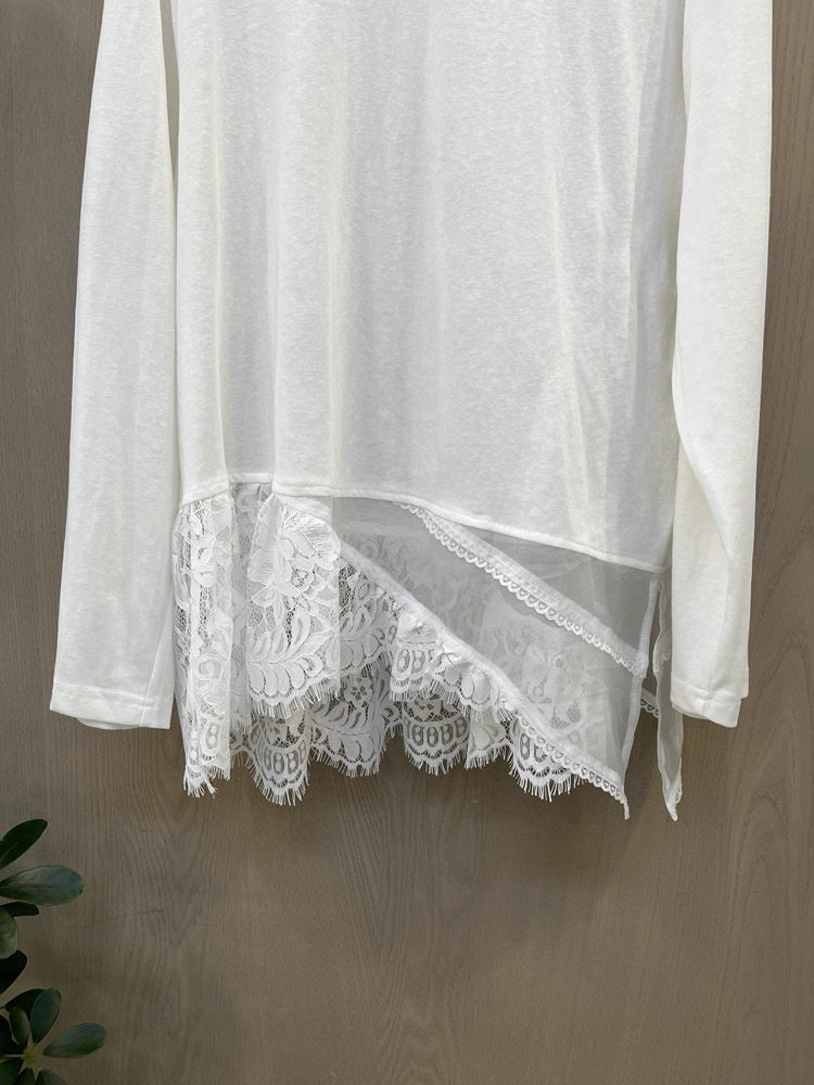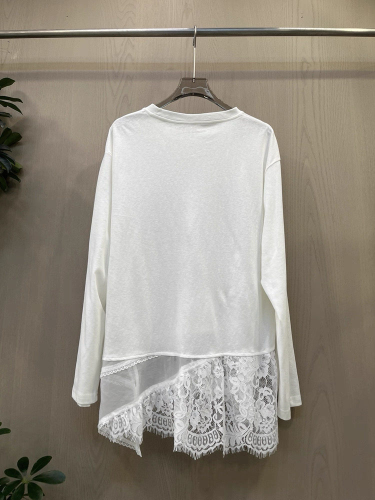 百搭圆领长袖 时尚 下摆蕾丝拼接上衣7911 新款 瑞瑞欧货2026年春季