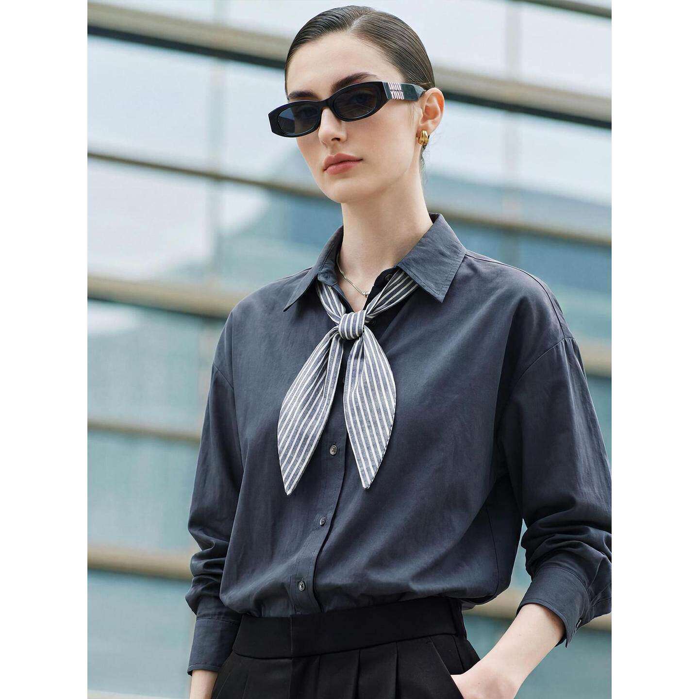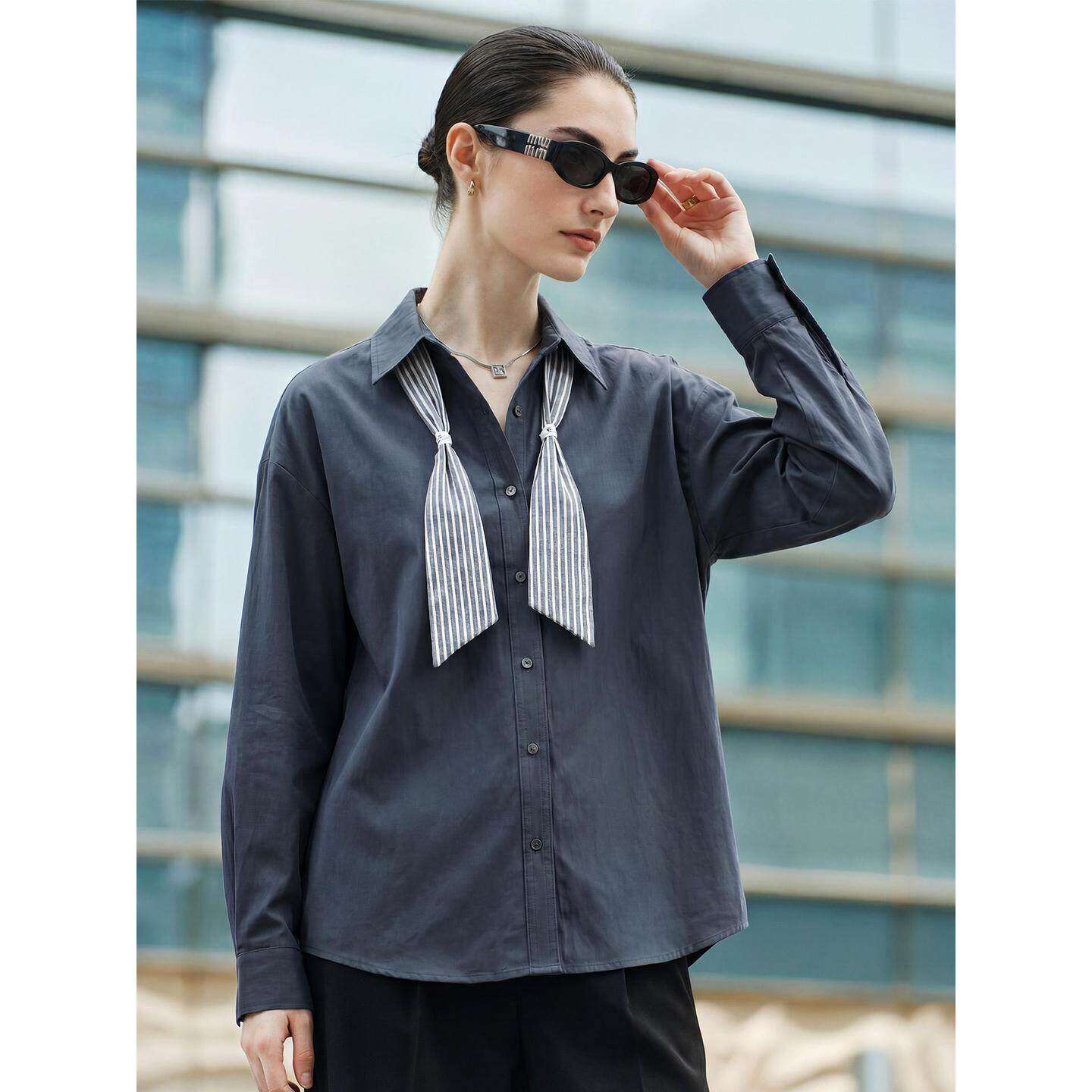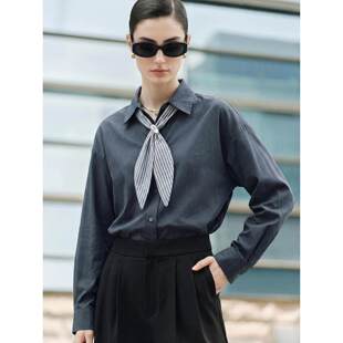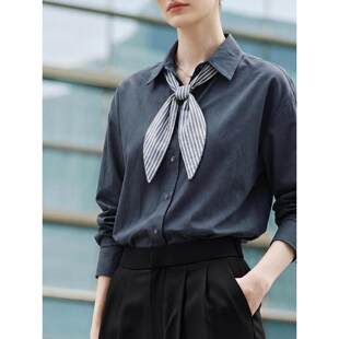 House 新款 百家好高级深灰色长袖 女2026春季 配丝巾衬衣 衬衫 Basic