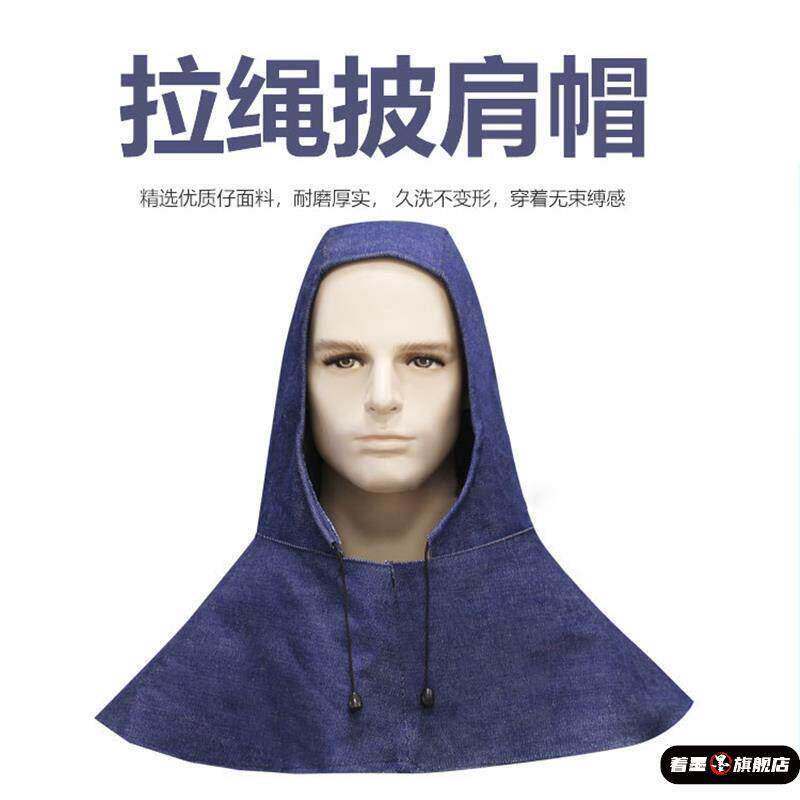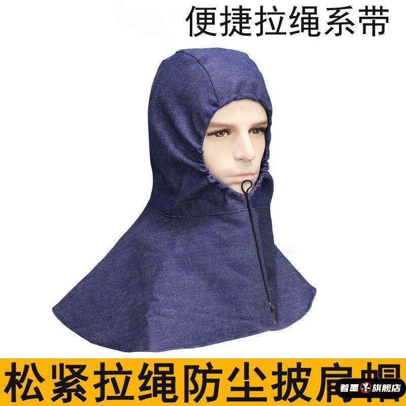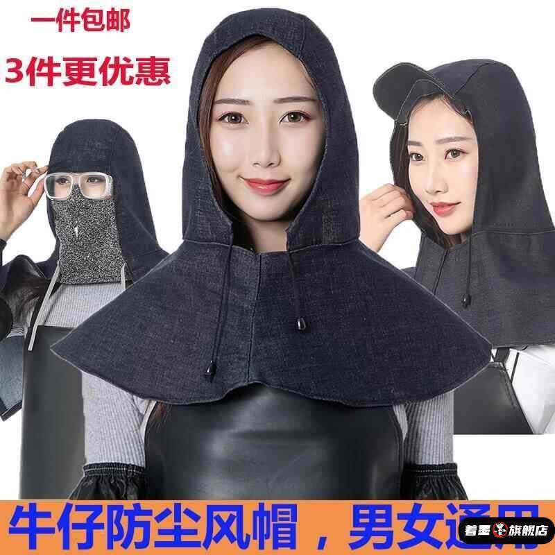 四季 防尘帽子带帽檐牛仔布加厚风帽劳保眼镜披肩帽男女搬运工作帽