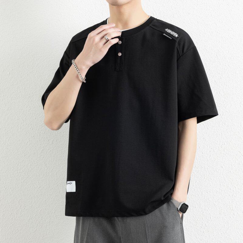 新款 假两件上衣青少年学生潮流半袖 休闲男式 T恤时尚 体恤 短袖 夏季