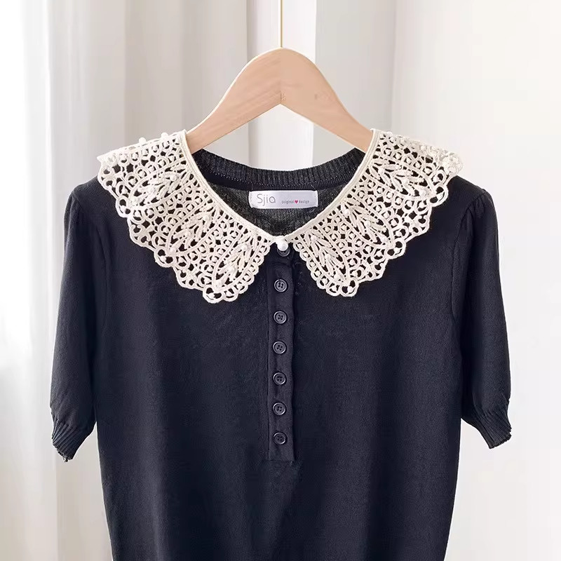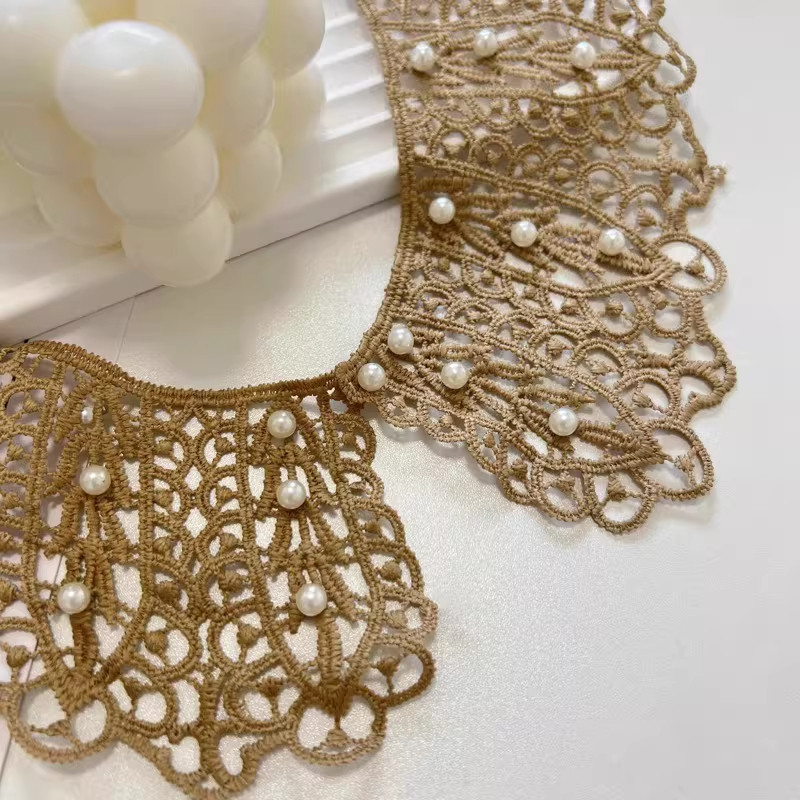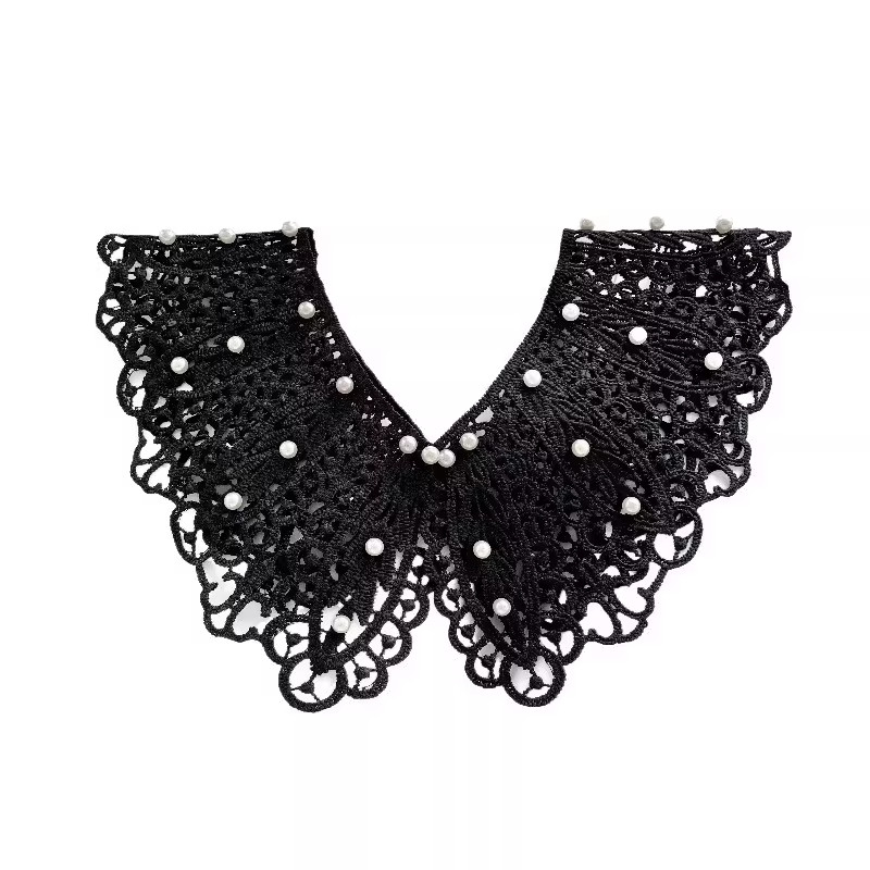 裙子外搭 假领子韩版 花边蕾丝披肩镂空娃娃领坎肩珍珠装 饰女士衬衫
