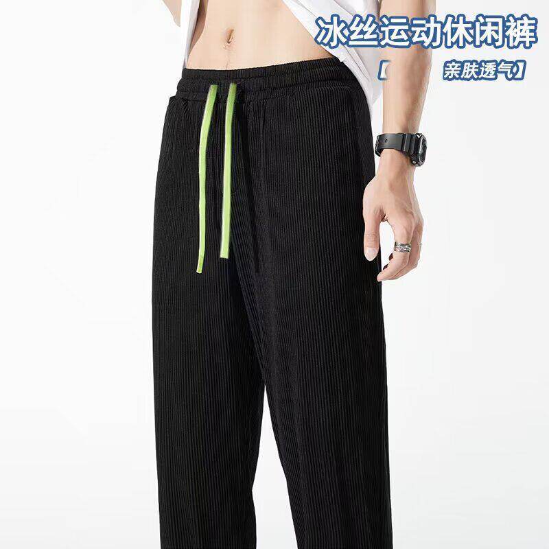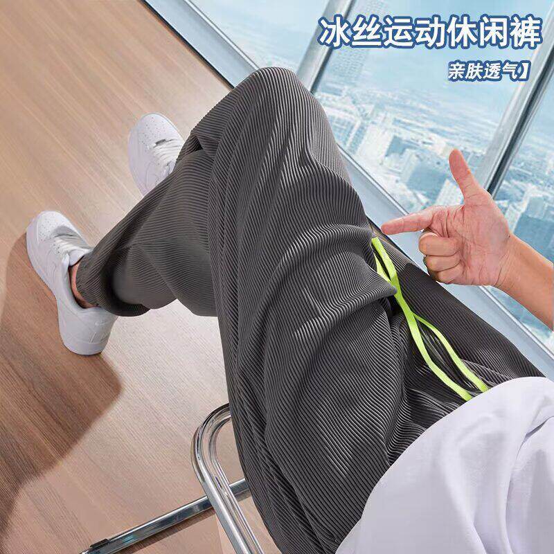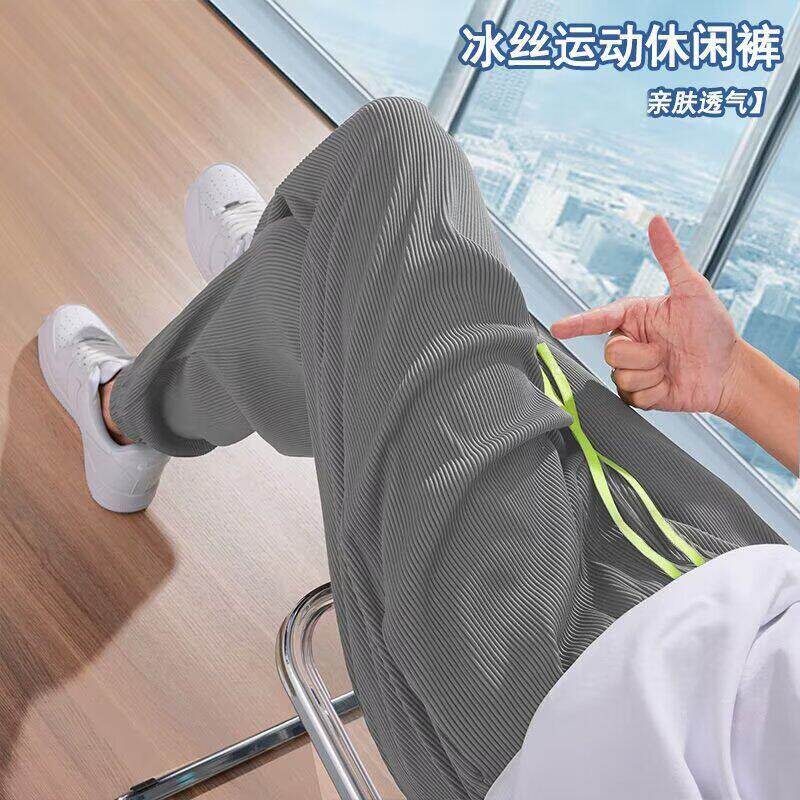 女运动裤 子休闲冰丝条纹百搭冰感速干裤 透气垂感束脚长宽松 裤 夏装