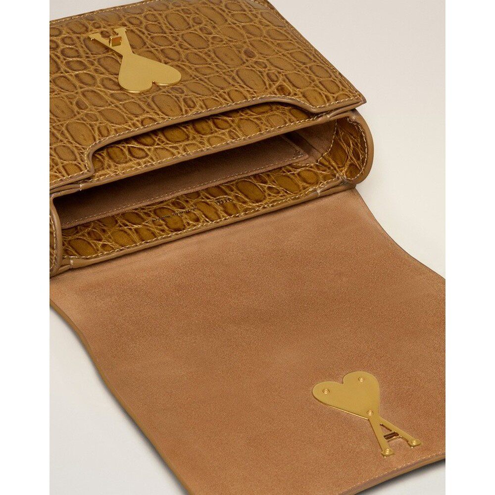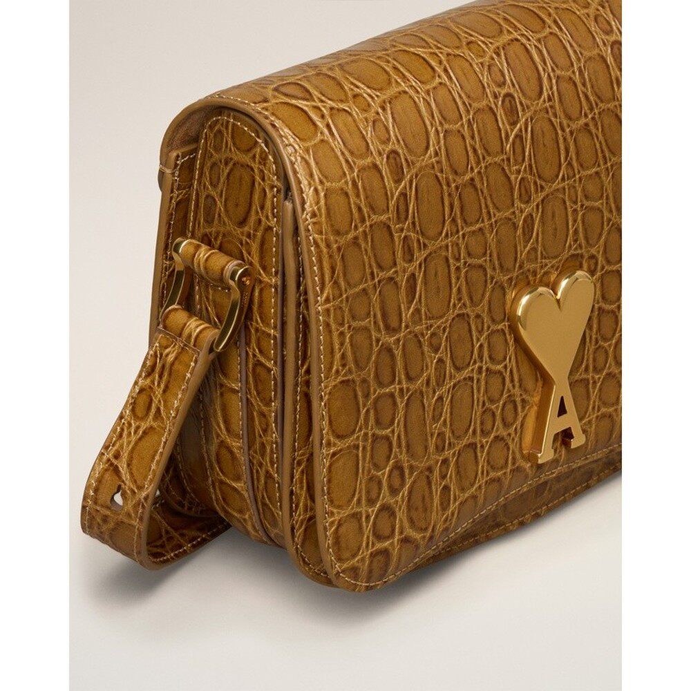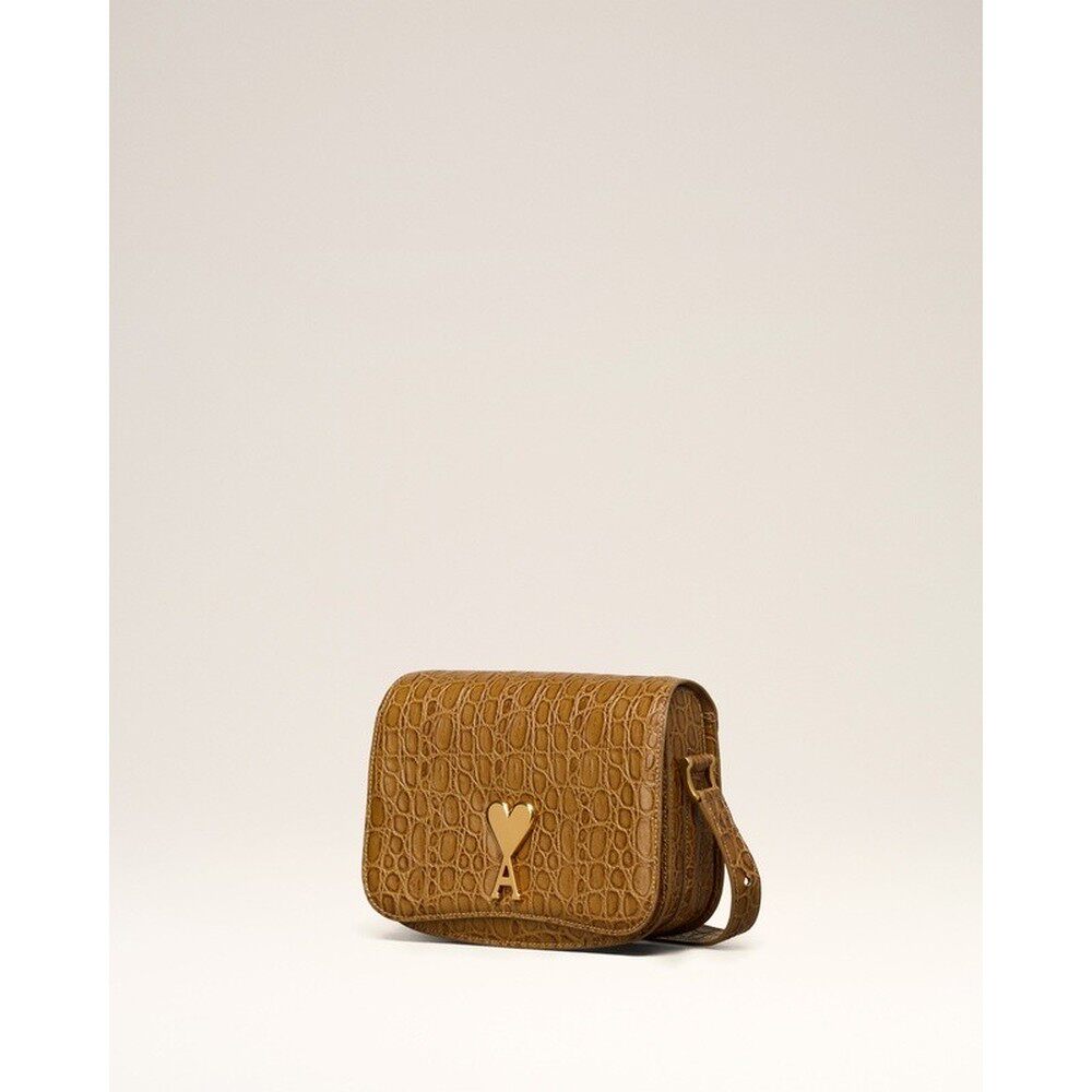 自营欧洲直邮AMI 棕色皮革斜挎包