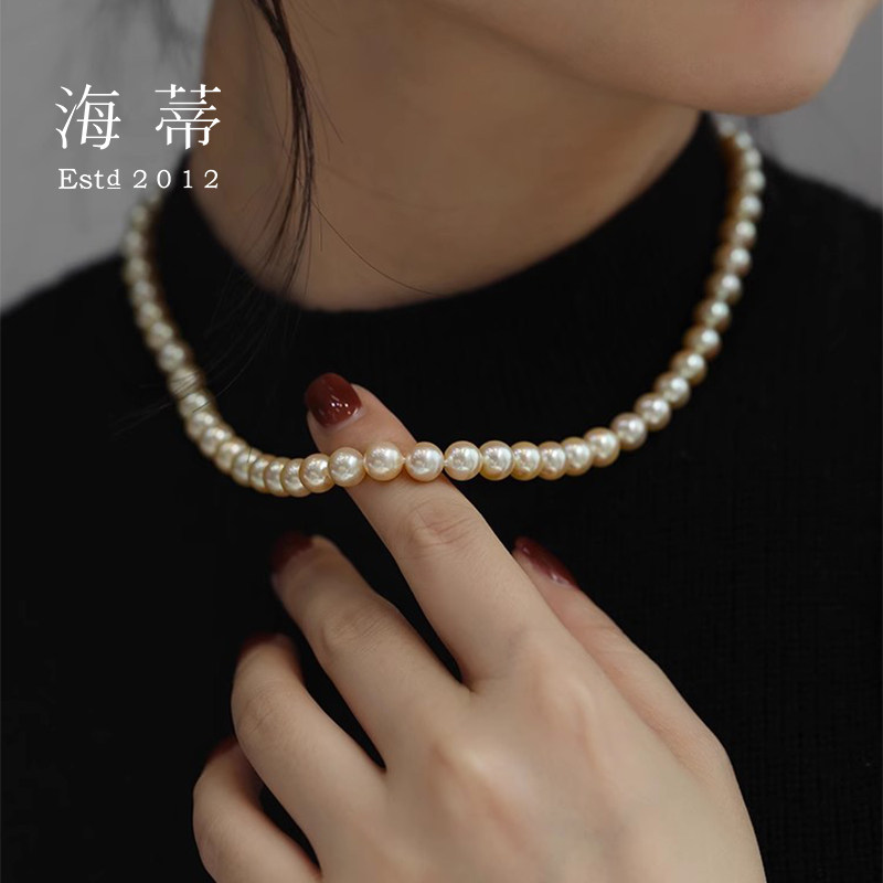 14K金串链 7.5mm海水akoya项链真科研FA证书 海蒂珠宝 与光同尘7
