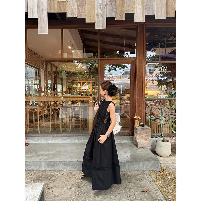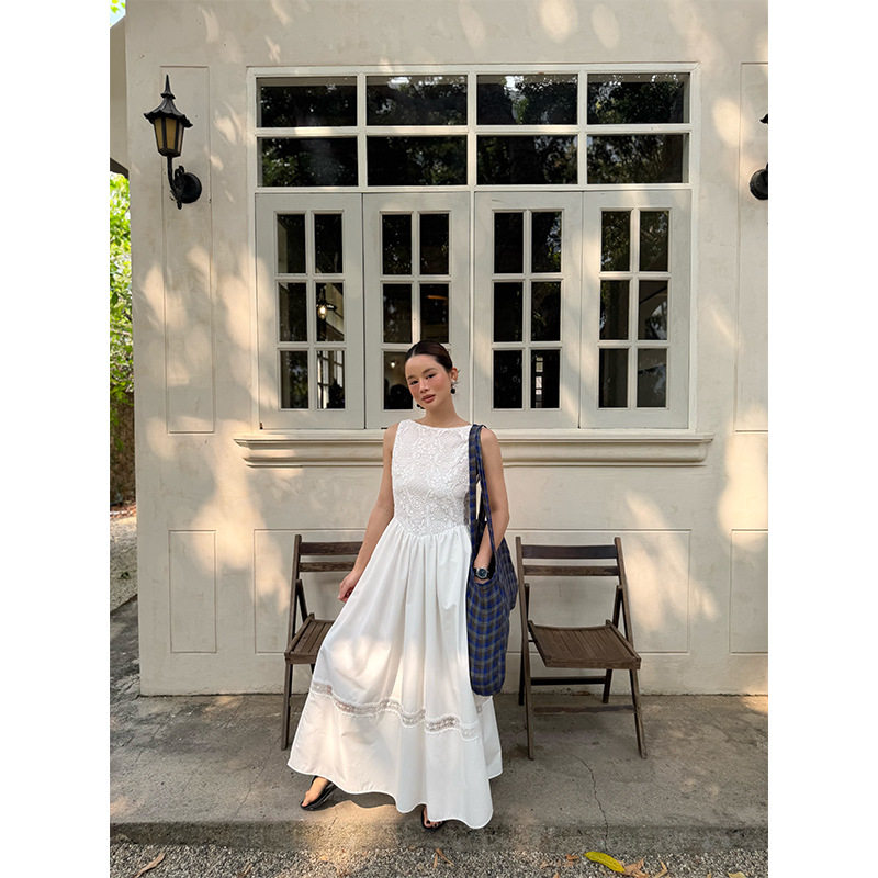 重工刺绣高腰深v后露背无袖 26春法式 连衣裙H26C8688 OPEN NEW