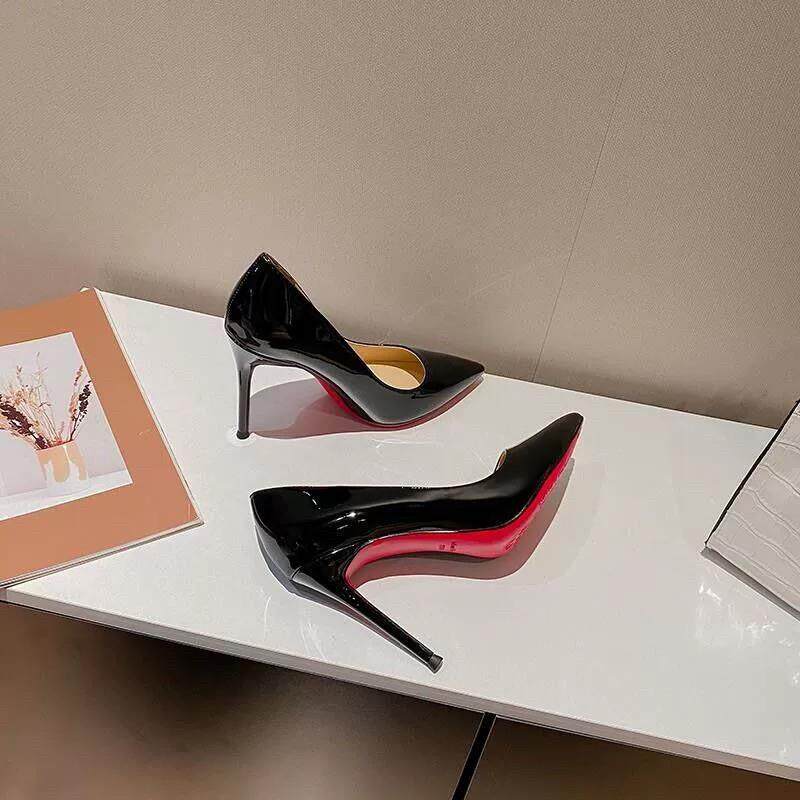 10CM 通勤尖头浅口气质性感细跟单鞋 品牌红底高跟鞋 女漆皮2025新款