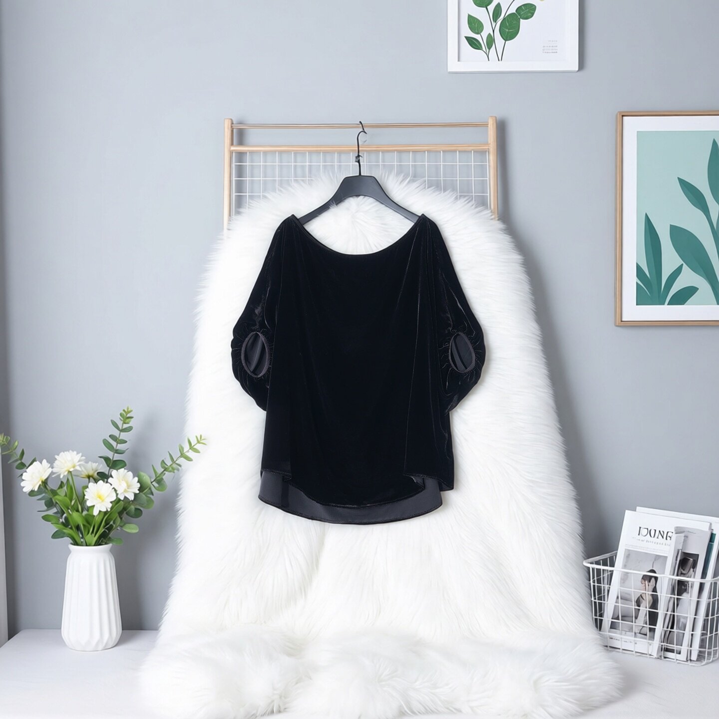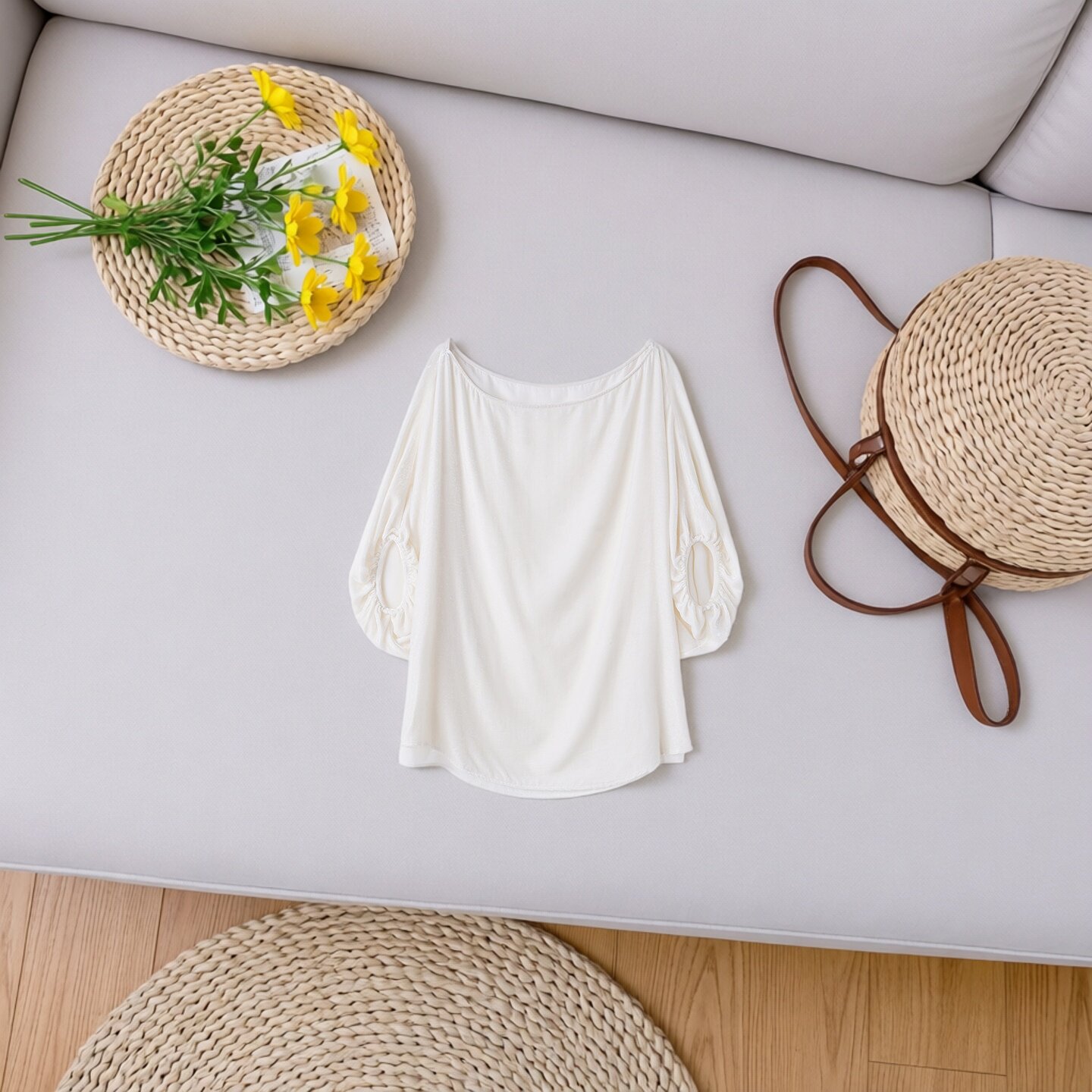 轻奢高级感盐系轻熟设计感罩衫 夏上衣 春夏斗篷真丝丝绒一字领短袖
