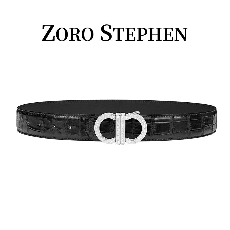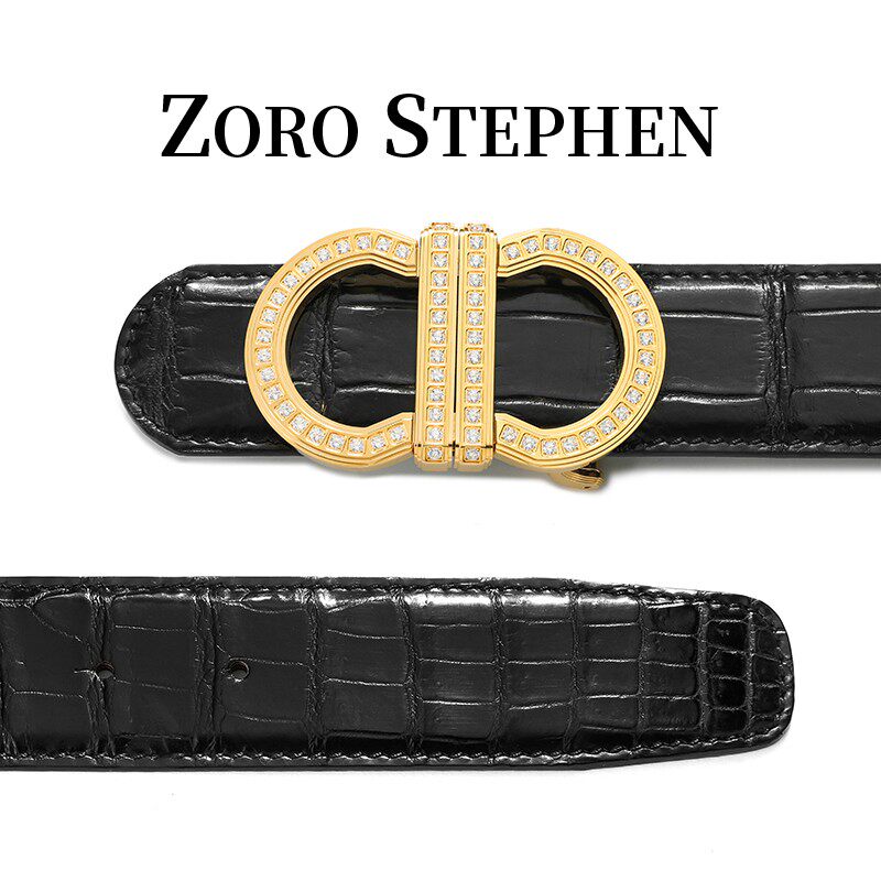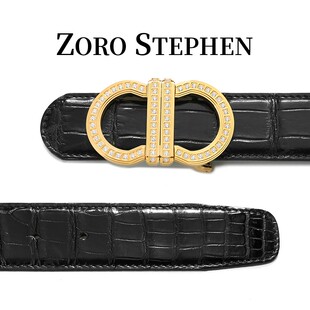 8字扣尼罗鳄鱼皮手工擦色腰带镶钻镀金腰带男款 2026男士 新款