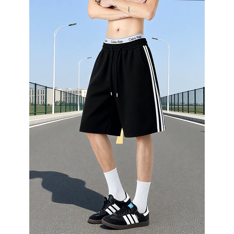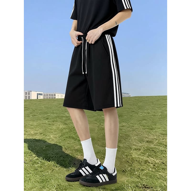 篮球五分裤 三条杠运动短裤 重磅休闲条纹卫裤 潮牌青少年大码 男夏季