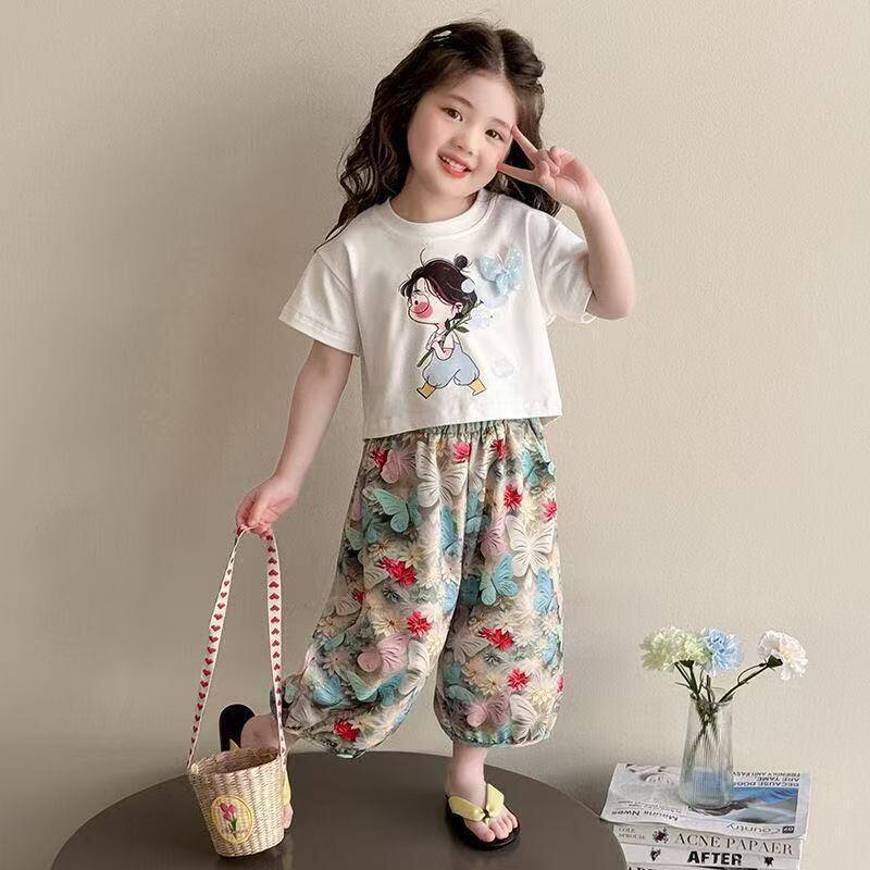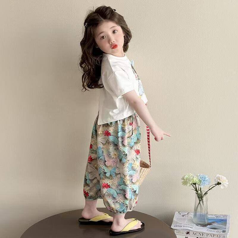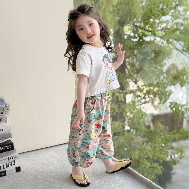 女童衣服薄款 套装 短袖 长裤 女孩 新款 休闲夏装 夏季
