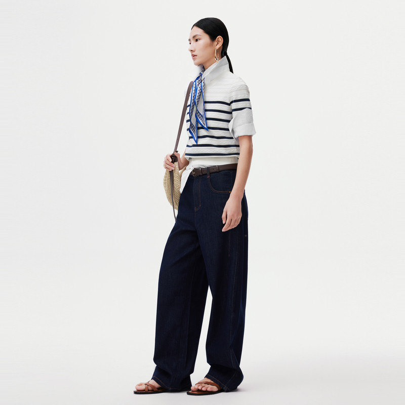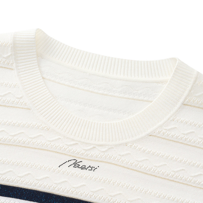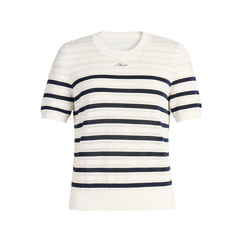 新款 NAERSI娜尔思优雅波浪纹肌理法式 26年夏季 短袖 上衣 条纹针织衫