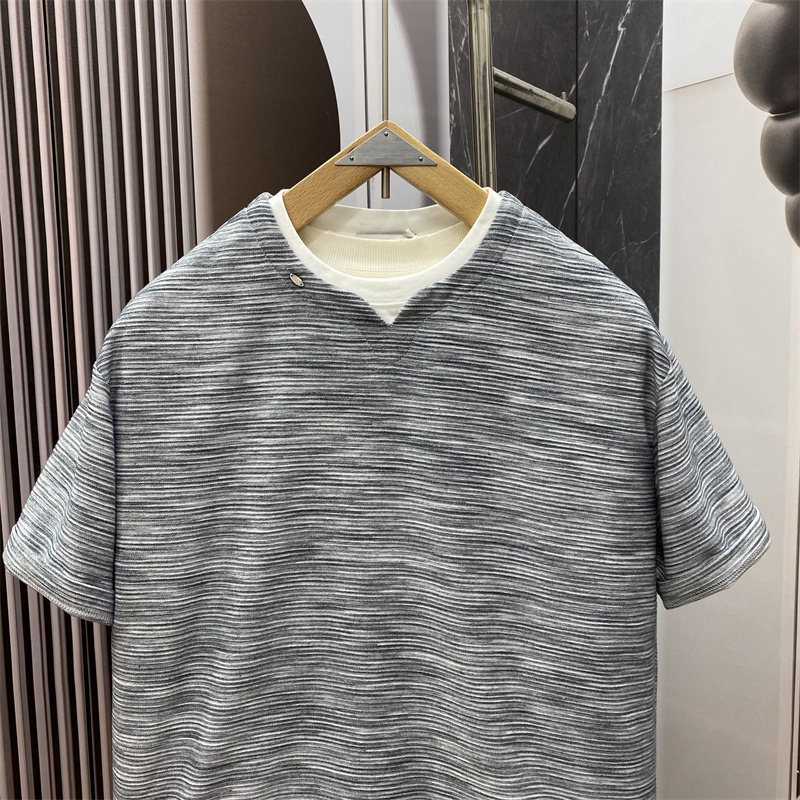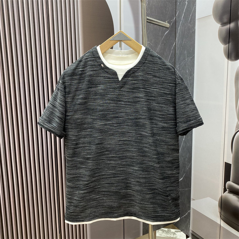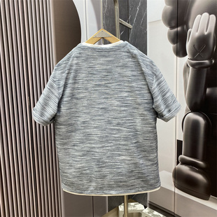 老钱风男士 美式 短袖 T恤时尚 上衣 夏季 百搭假两件宽松休闲半袖 新款