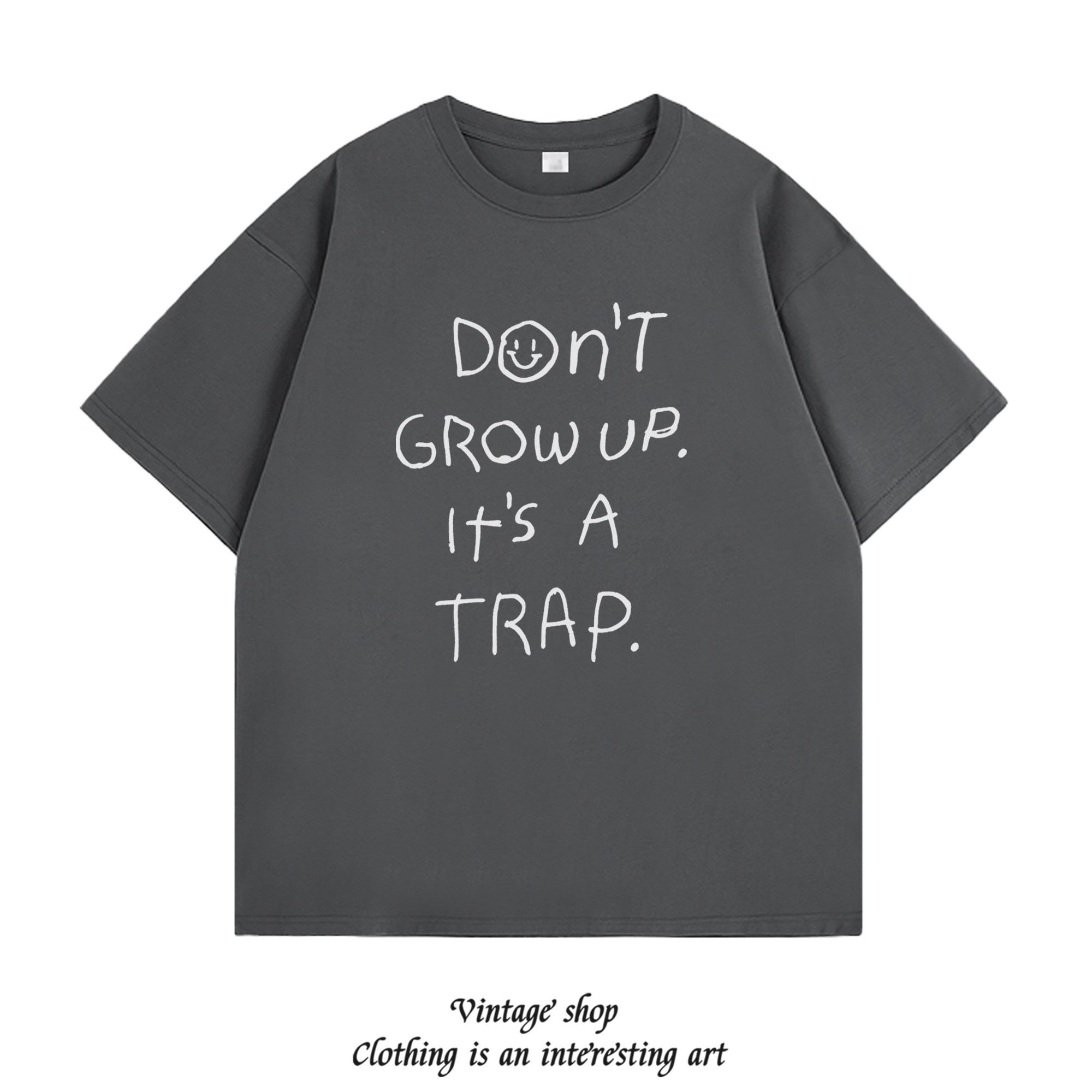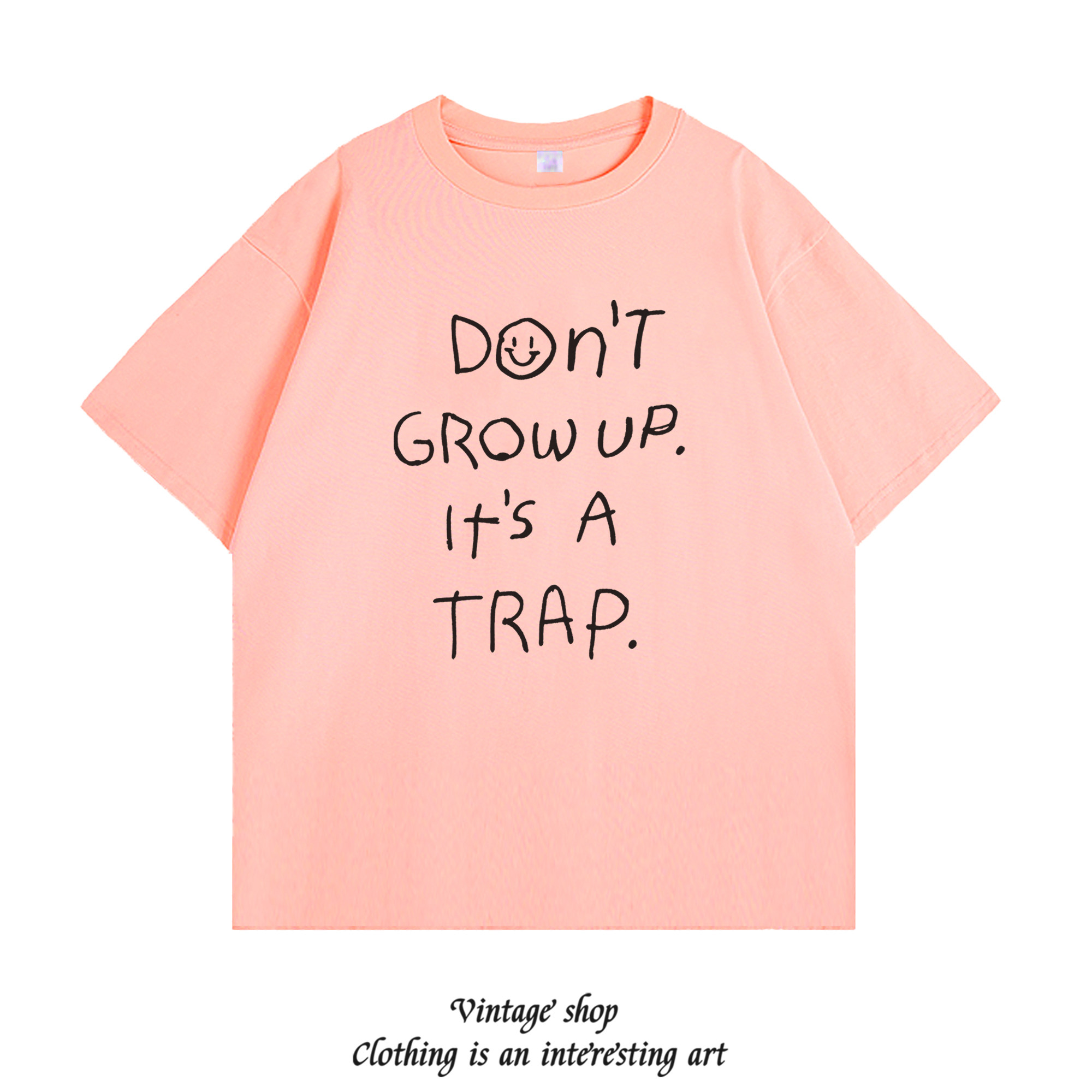 ins宽松短袖 纯棉t恤女白色上衣潮 trap夏季 grow don