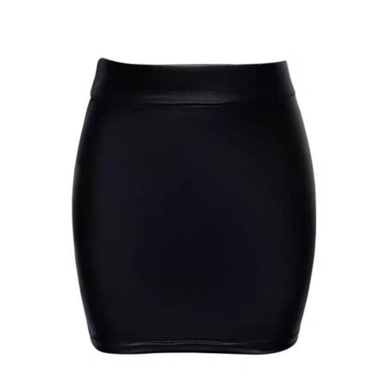 约会短裙高弹超薄无内衬仿皮包臀裙性感OL秘书外穿紧身迷你半身裙