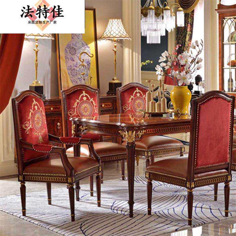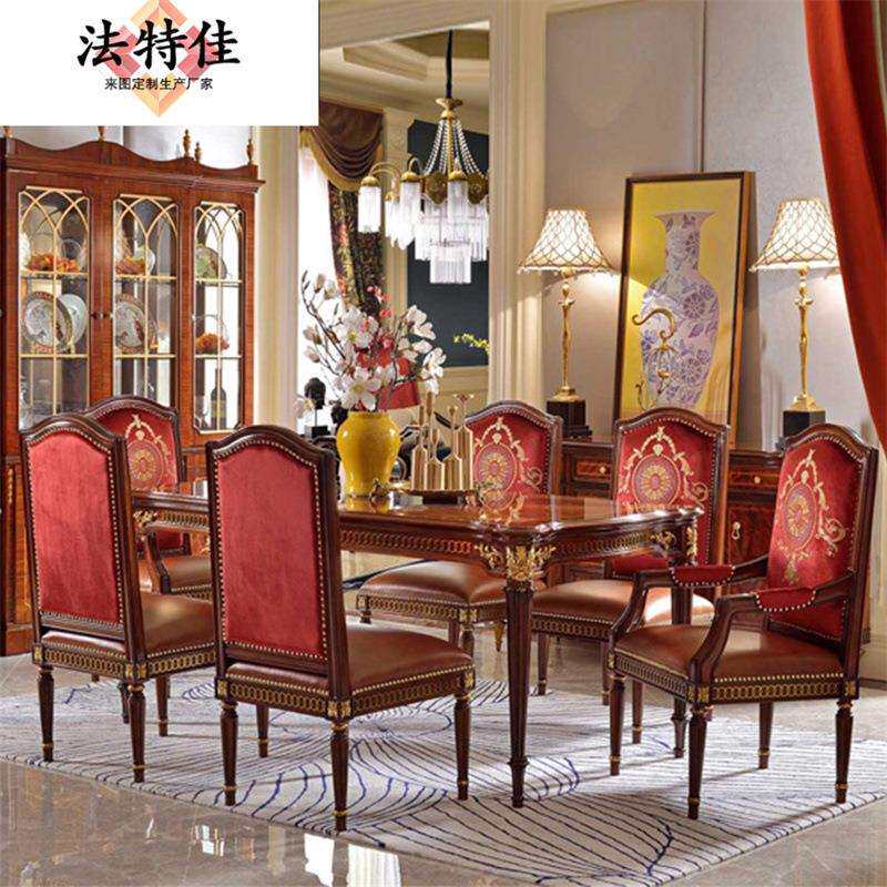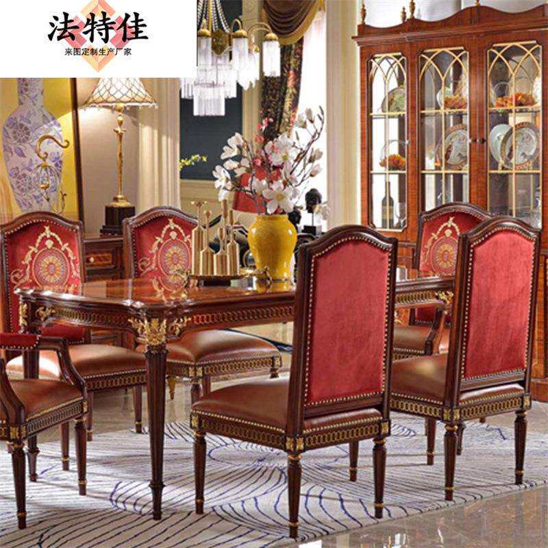 奢华英式 方形长餐桌 餐厅家具大户型实木雕花餐桌椅组合欧式
