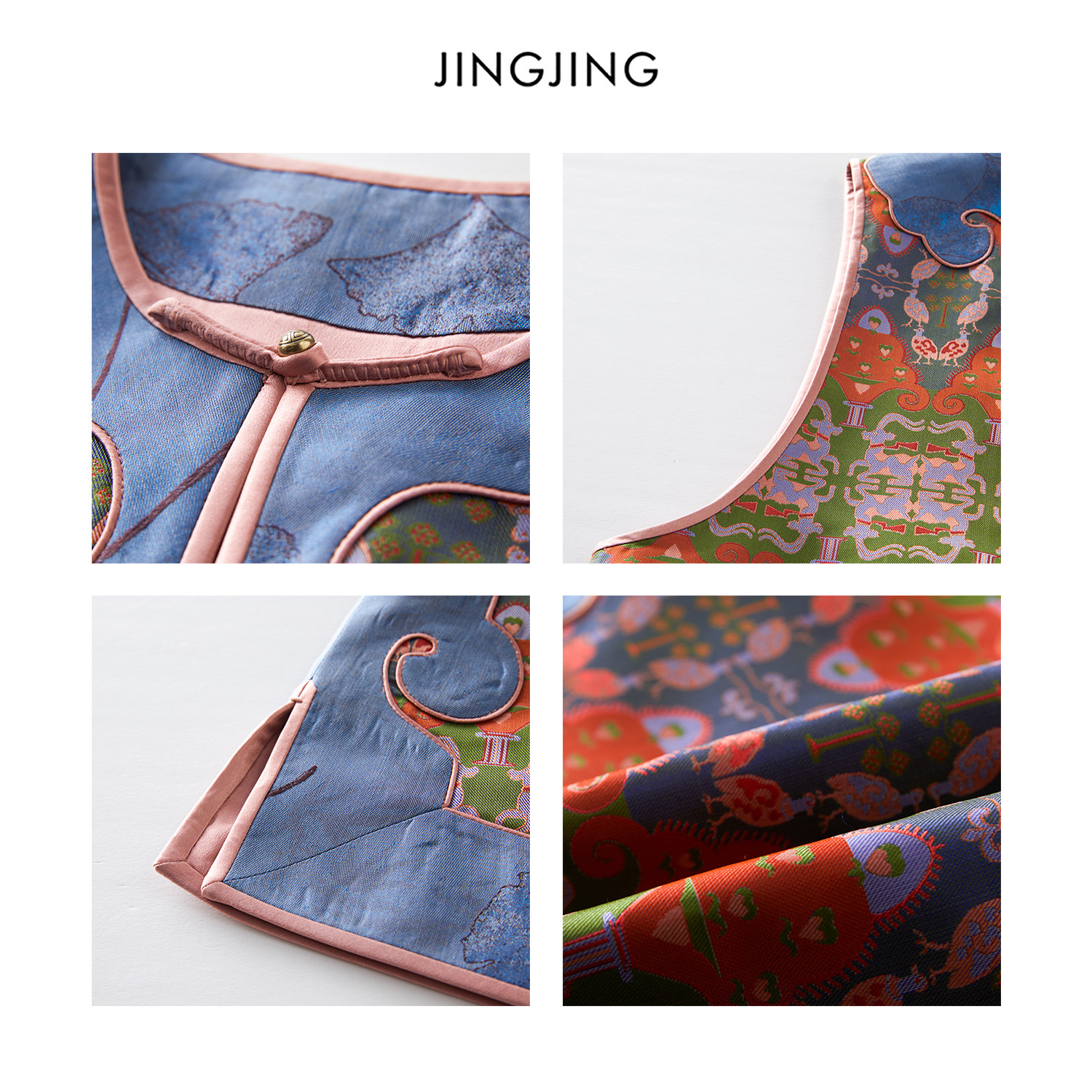 JINGJING 张和才名家桑蚕丝36姆米蜀锦对襟如意头马甲 火树银花