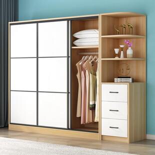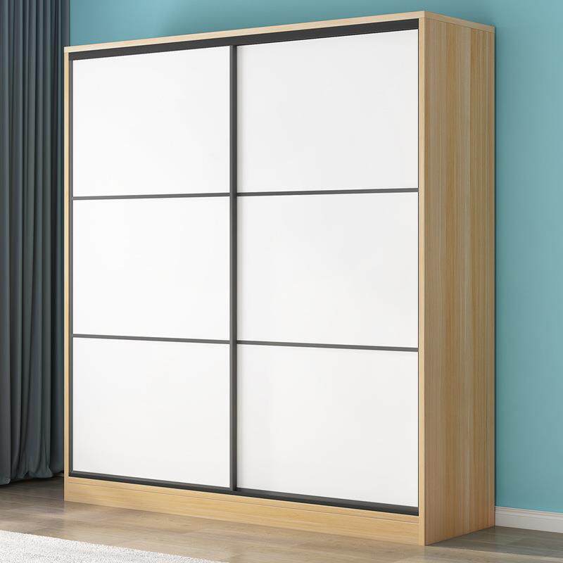 衣柜家用卧室实木推拉门深60简约现代出租房木质移门收纳柜子衣橱