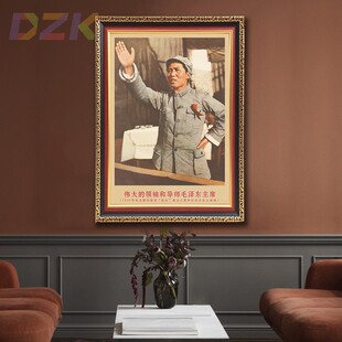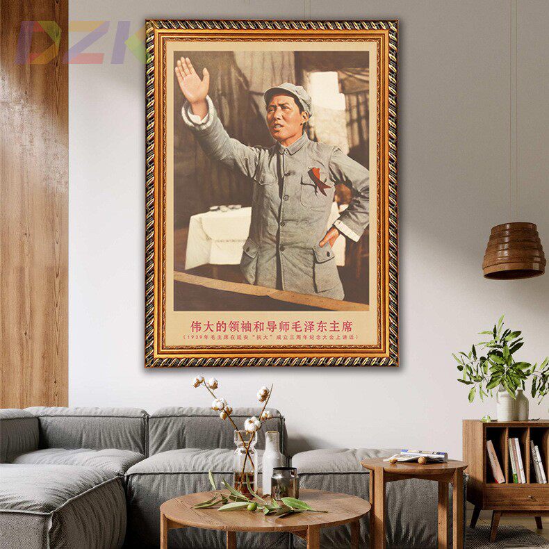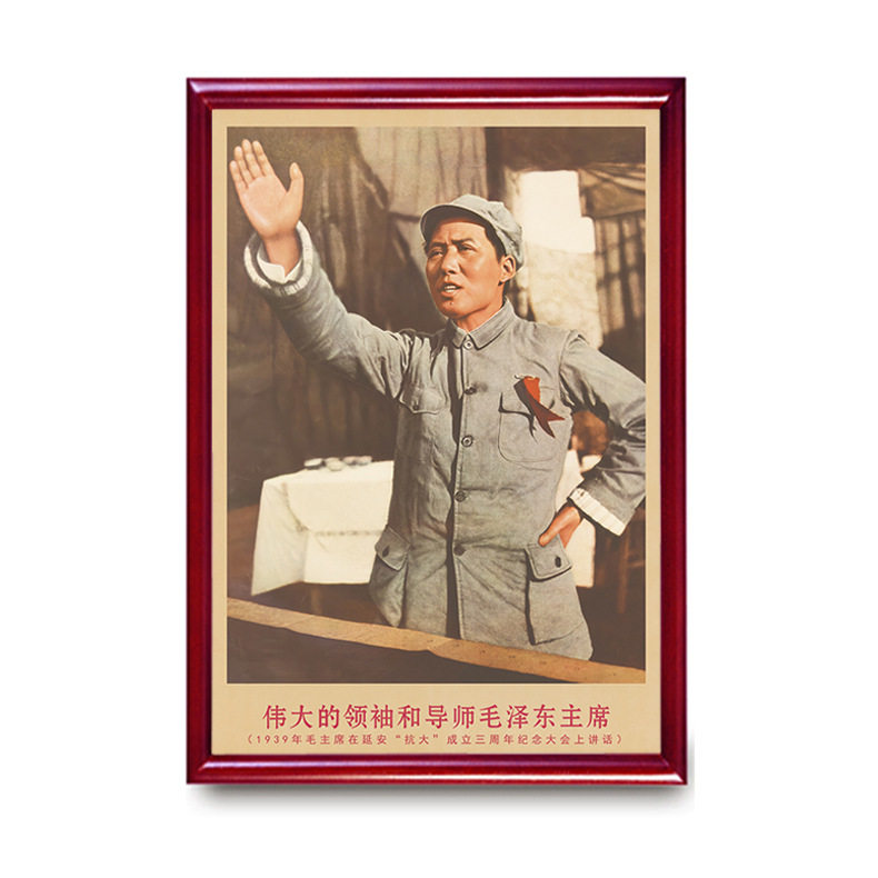 毛主席画像有带框1939年在延安大会上复古装 饰画客厅书房墙壁挂h4