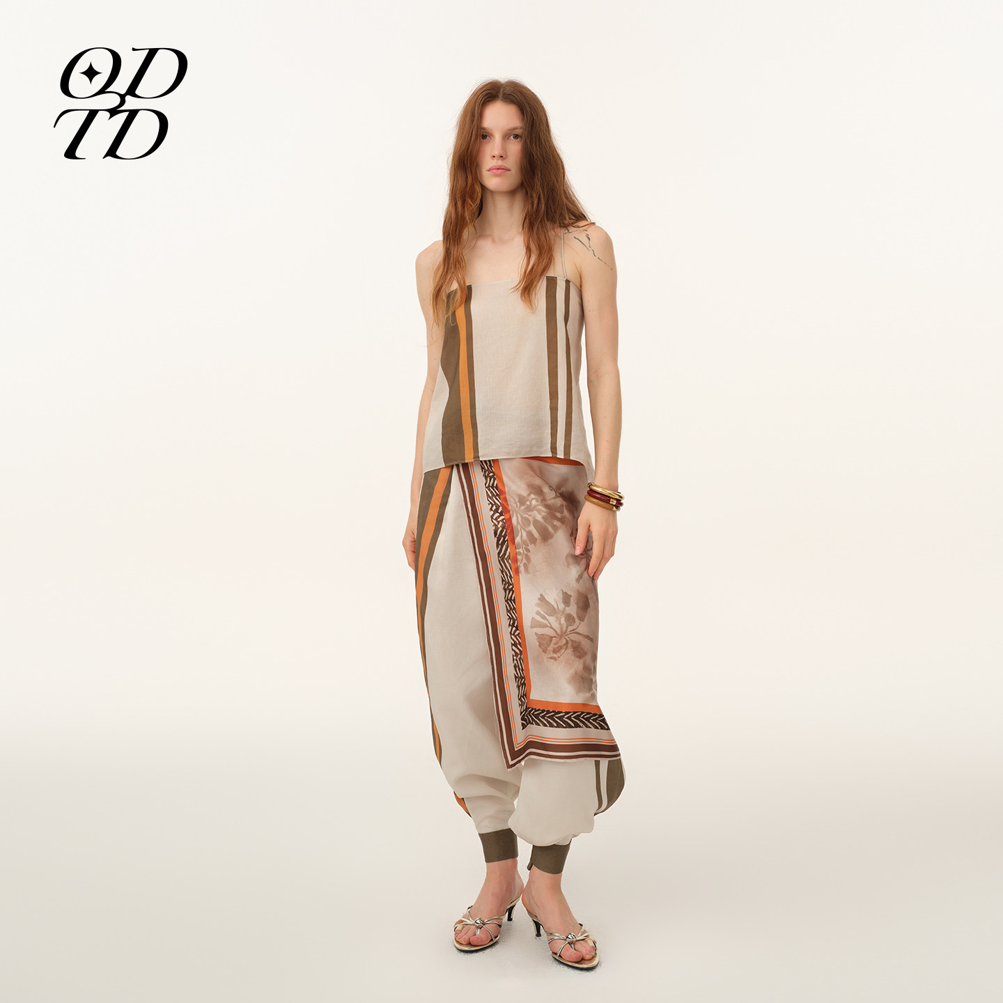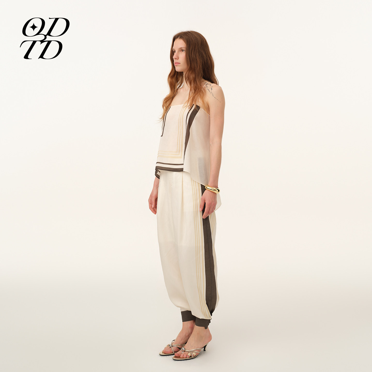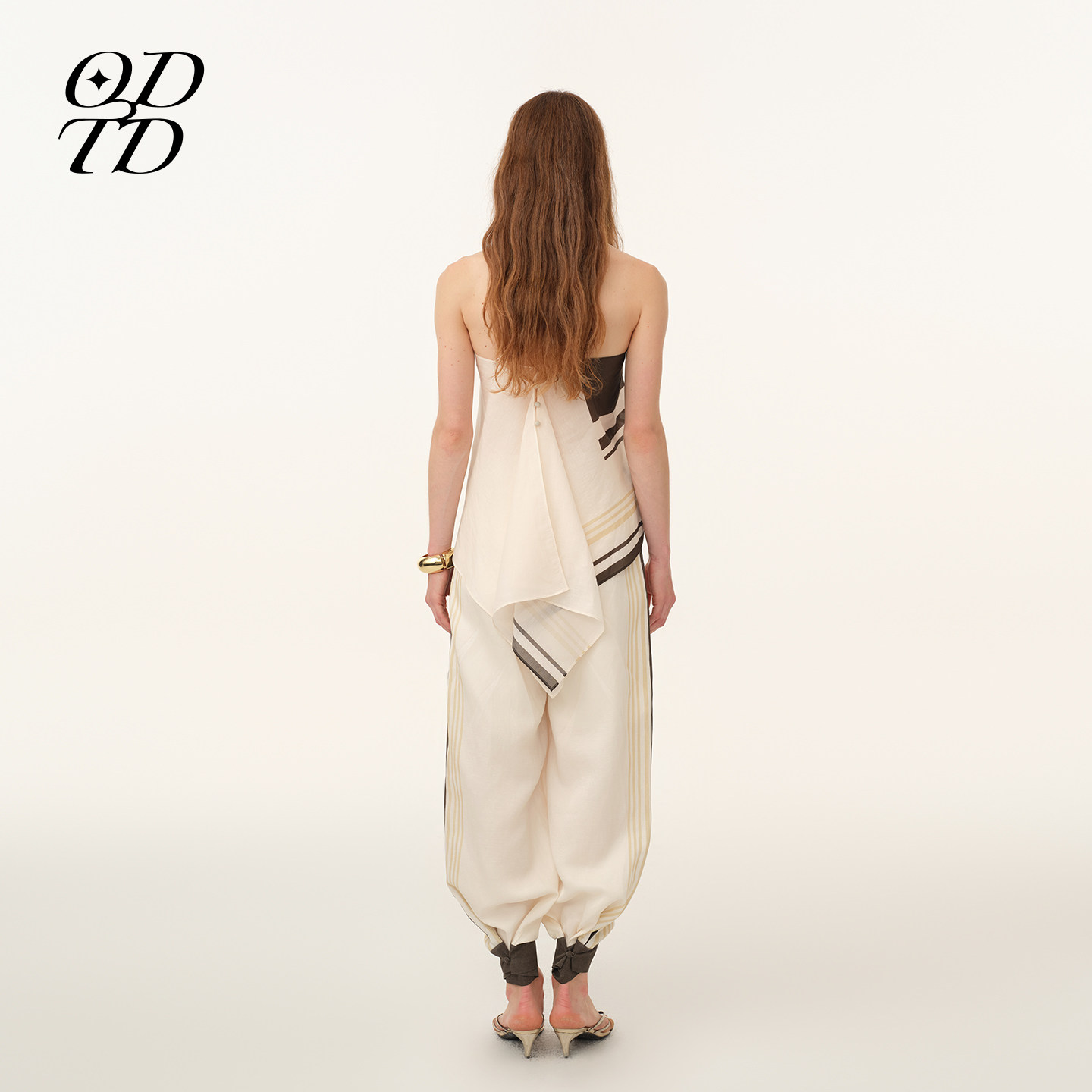 立体吊带上衣套装 条纹一片式 ODTD26春夏新款 度假风 设计师女装