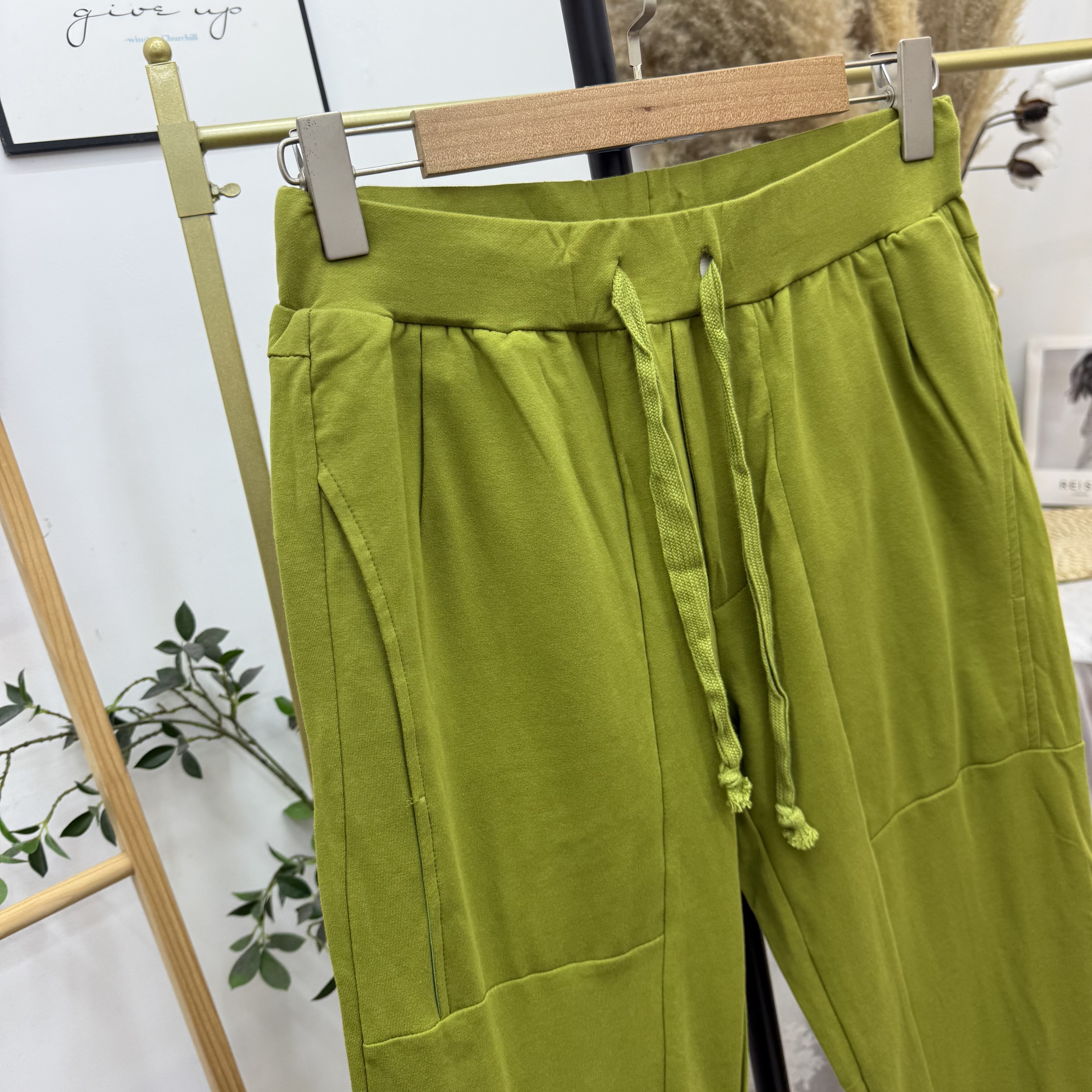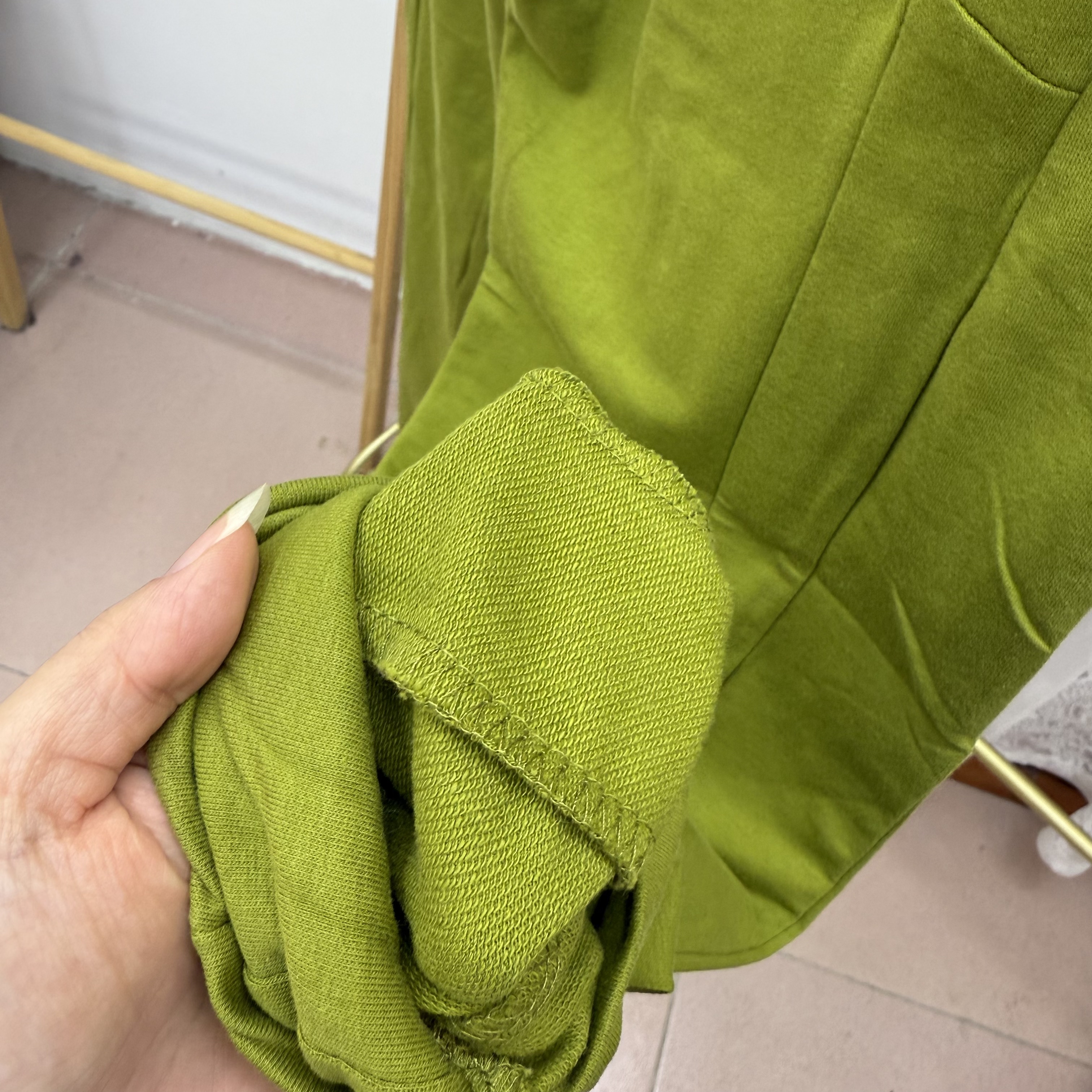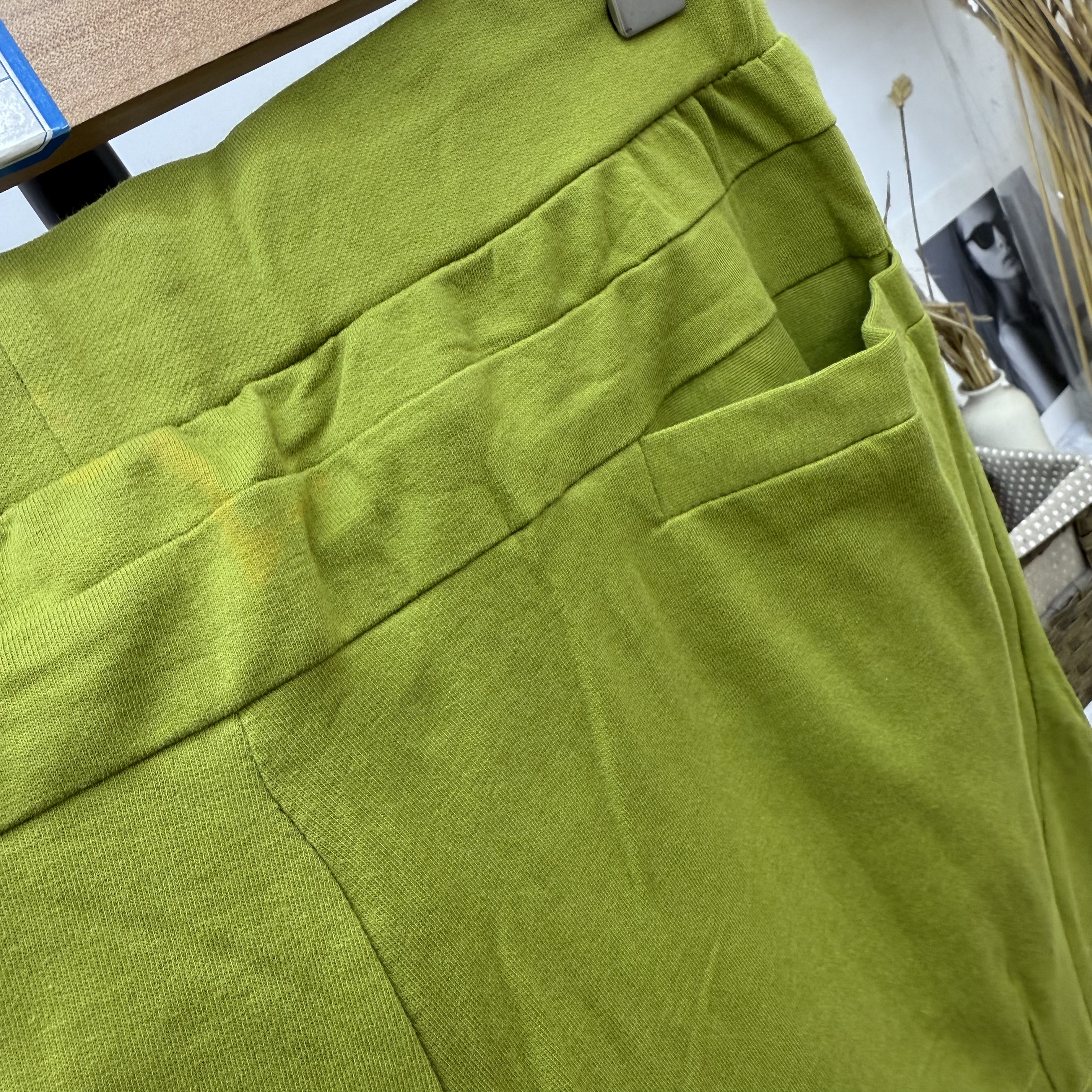 黄绿色薄圈棉卫裤 实体断码 出口单
