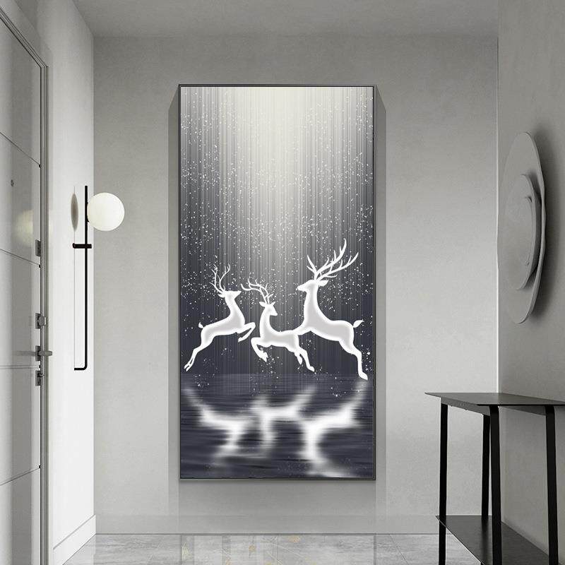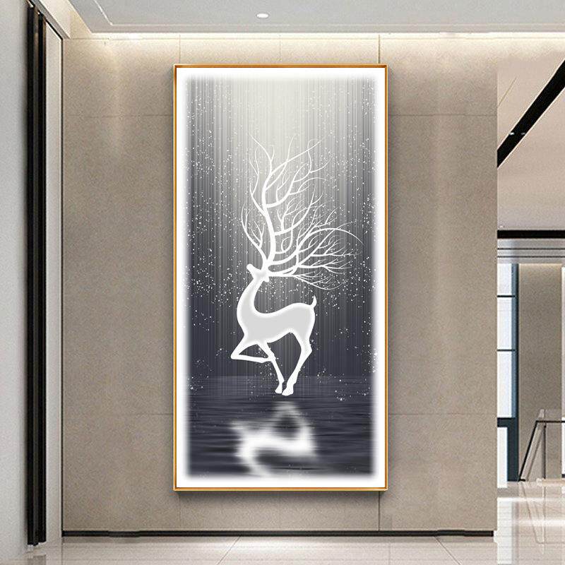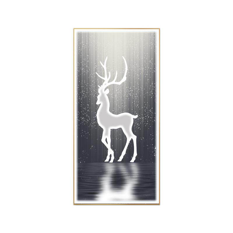 入户玄关装 饰画月光麋鹿极简约现代LED挂画走廊尽头晶瓷镶钻壁画