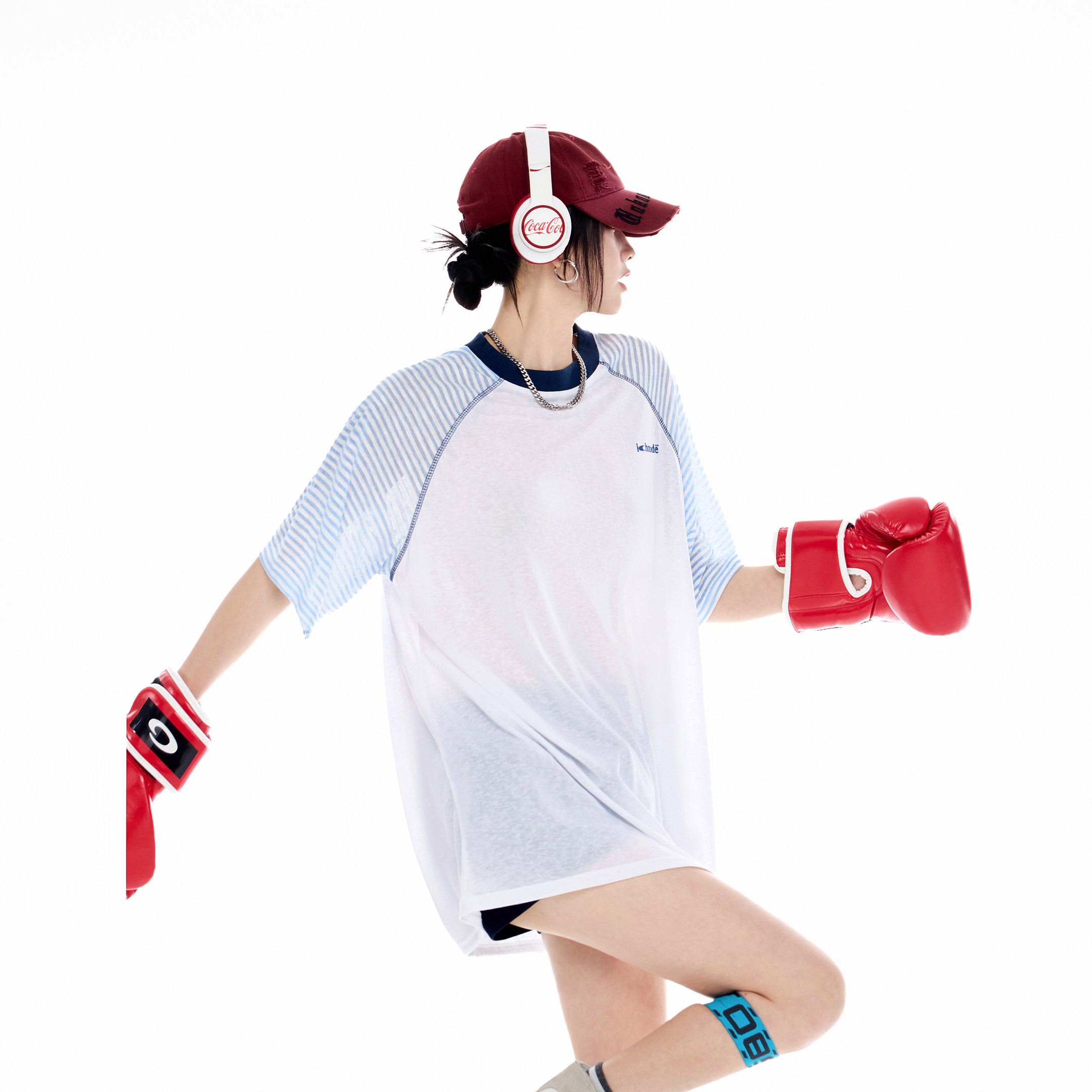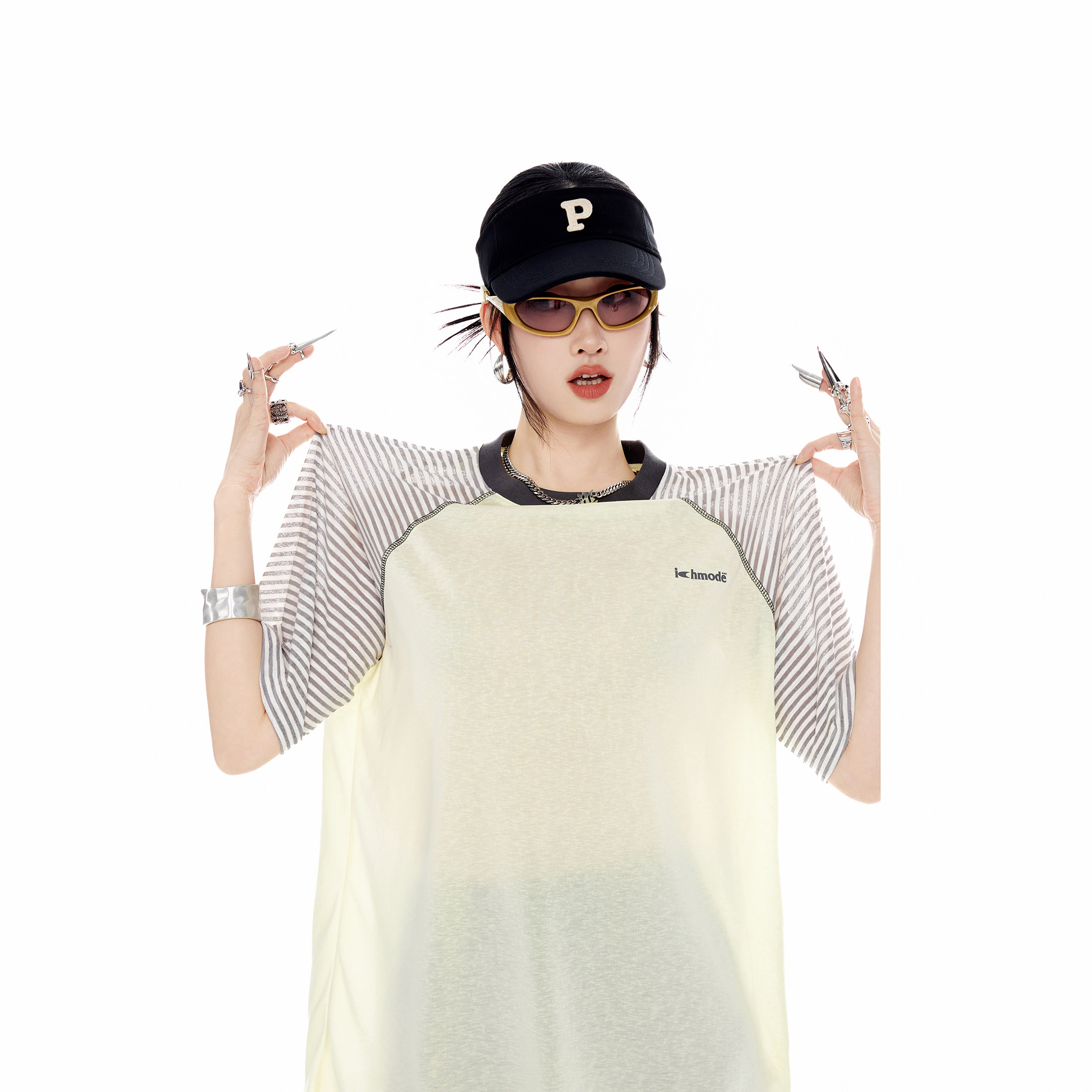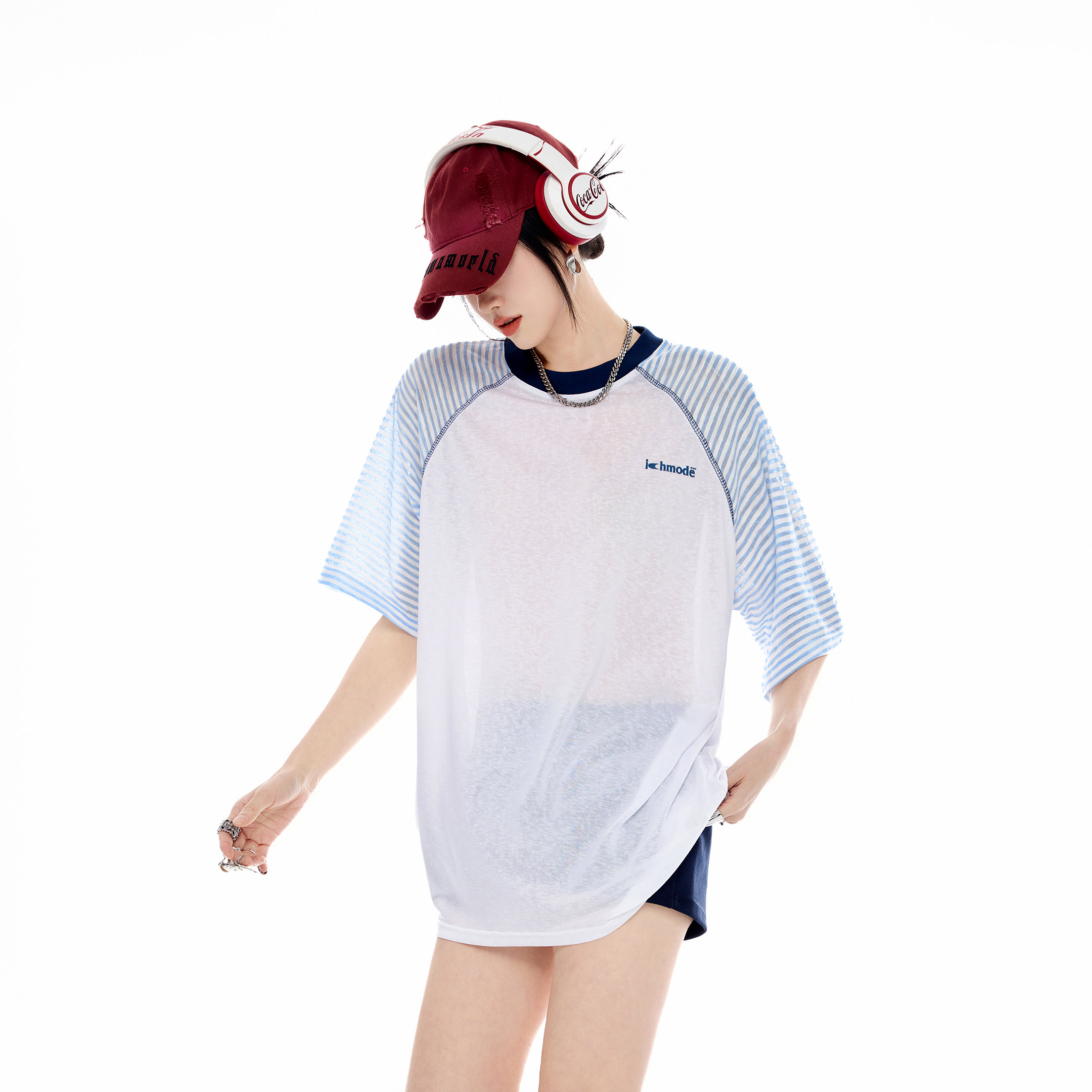 插肩袖 ICH 物理防晒罩衫 T恤女夏季 上衣 MODE条纹哈苏线莱赛尔短袖