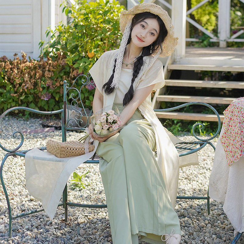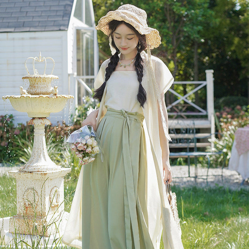 素通勤阔腿裤 天丝宋制背心汉元 汉服女 改良宋裤 洛竹沁夏原创夏季